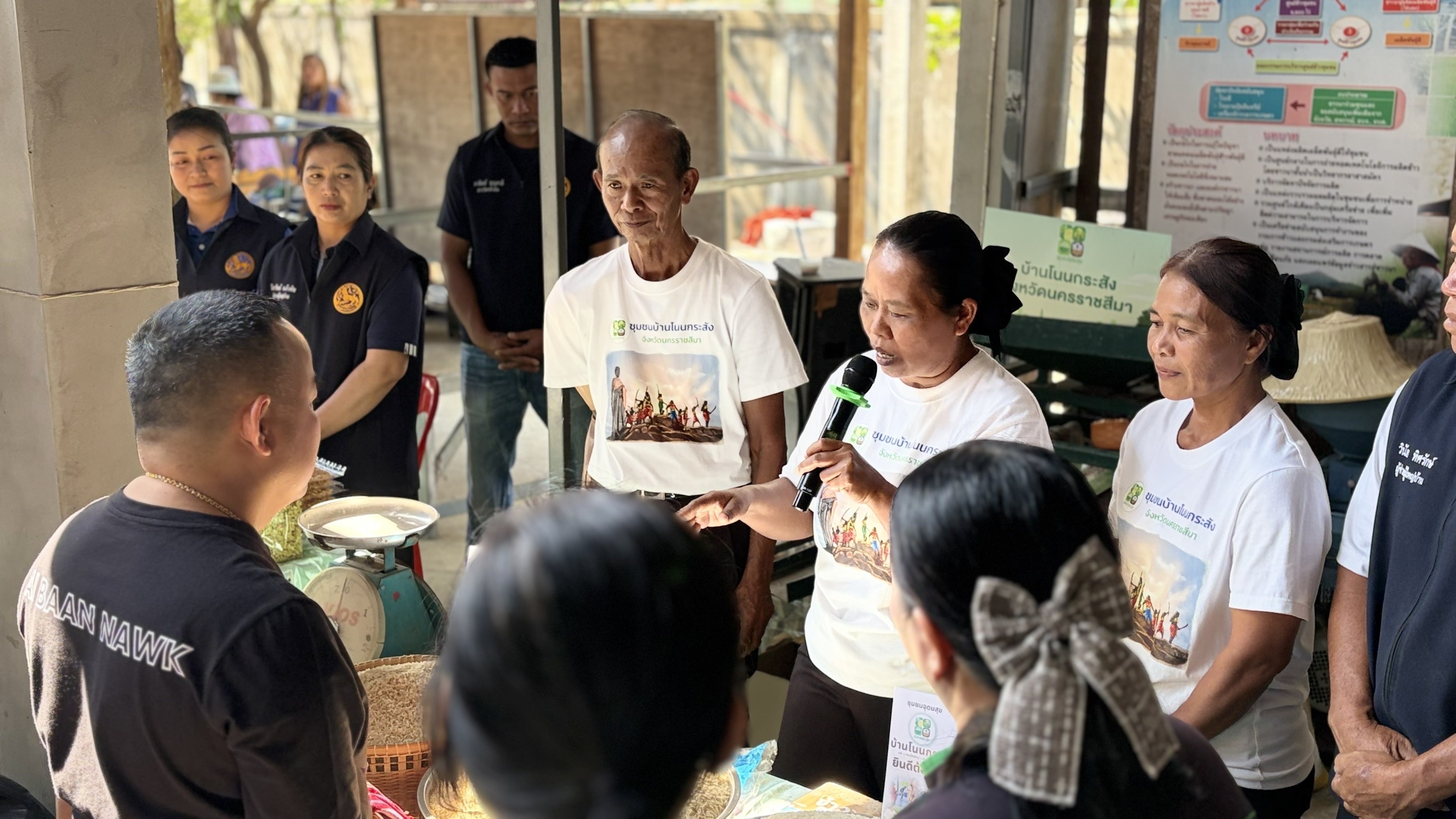 นางสาวไข่มุก จูงใจจารุมาศ รองผู้จัดการธนาคารเพื่อการเกษตรและสหกรณ์การเกษตร (ธ.ก.ส.) ลงพื้นที่เยี่ยมชมงานและมอบรางวัลให้กับชุมชน “บ้านโนนกระสัง” ตำบลกระเบื้องใหญ่ อำเภอพิมาย จังหวัดนครราชสีมา ที่ได้รับรางวัลชนะเลิศจากการประกวดชุมชนอุดมสุขที่ยั่งยืนระดับประเทศ ปี 2568 จาก ธ.ก.ส. ซึ่งชุมชนดังกล่าวเป็นชุมชนต้นแบบด้านการบริหารจัดการชุมชนทั้งการส่งเสริมอาชีพ การพัฒนาคุณภาพชีวิต การอนุรักษ์ทรัพยากรธรรมชาติและสิ่งแวดล้อม ถือเป็นชุมชนที่มีความเข้มแข็งที่เกิดจากการรวมกลุ่มของประชาชนอย่างเป็นระบบจึงเป็นปัจจัยสำคัญด้านการพัฒนาเศรษฐกิจฐานรากอย่างยั่งยืน ตัวอย่างกิจกรรมที่สะท้อนความเข้มแข็งของชุมชน เช่น การบริหารจัดการข้าวครบวงจร ตั้งแต่การพัฒนาสายพันธุ์ข้าวการผลิต การคัดเลือกวัตถุดิบ และนำมาแปรรูปเป็นผลิตภัณฑ์หลากหลาย การสร้างมูลค่าเพิ่ม และการพัฒนาตลาดอย่างเป็นระบบ ตัวอย่างผลิตภัณฑ์เด่นได้แก่“ข้าวทุ่งสัมฤทธิ์” ข้าวหอมมะลิที่มีเครื่องหมายรับรองสิ่งบ่งชี้ทางภูมิศาสตร์ (GI) และเป็นของดีประจำจังหวัดนครราชสีมา และได้รับการรับรองมาตรฐาน GAP มั่นใจได้ถึงคุณภาพและความปลอดภัย ทั้งข้าวเจ้าหอมมะลิ ข้าวไรซ์เบอร์รี่ ข้าวฮาง การต่อยอดธุรกิจผลิตภัณฑ์แปรรูปจากรวงข้าว อาทิ ครีมน้ำนมข้าว สบู่น้ำนมข้าว สามารถสร้างรายได้หมุนเวียนในชุมชน ในโอกาสนี้ยังได้ร่วมแลกเปลี่ยนความคิดเห็นถึงแนวทางการพัฒนาชุมชน อย่างยั่งยืนการขยายผลสู่พื้นที่อื่น เพื่อเสริมสร้างความมั่นคงทางอาหารและเศรษฐกิจของชุมชนในระยะยาว นอกจากนี้ ในปี 2569 ชุมชนมีแผนจะนำพื้นที่นาข้าวแปลงใหญ่ เข้าร่วมโครงการ BAAC Carbon Credit ภาคนาข้าว (ข้าวลดโลกร้อน) ของ ธ.ก.ส. อีกด้วย ทั้งนี้ ผู้ที่สนใจข้าวหอมมะลิทุ่งสัมฤทธิ์ หรือผลิตภัณฑ์จากน้ำนมข้าวที่คัดสรรคุณภาพดีส่งตรงจากเกษตรตัวจริง สามารถติดต่อสอบถามเพิ่มเติมได้ที่เพจ Facebook : ขายข้าวนาแปลงใหญ่ บ้านโนนกระสัง พิมาย โคราช หรือโทร. 084 410 8065
