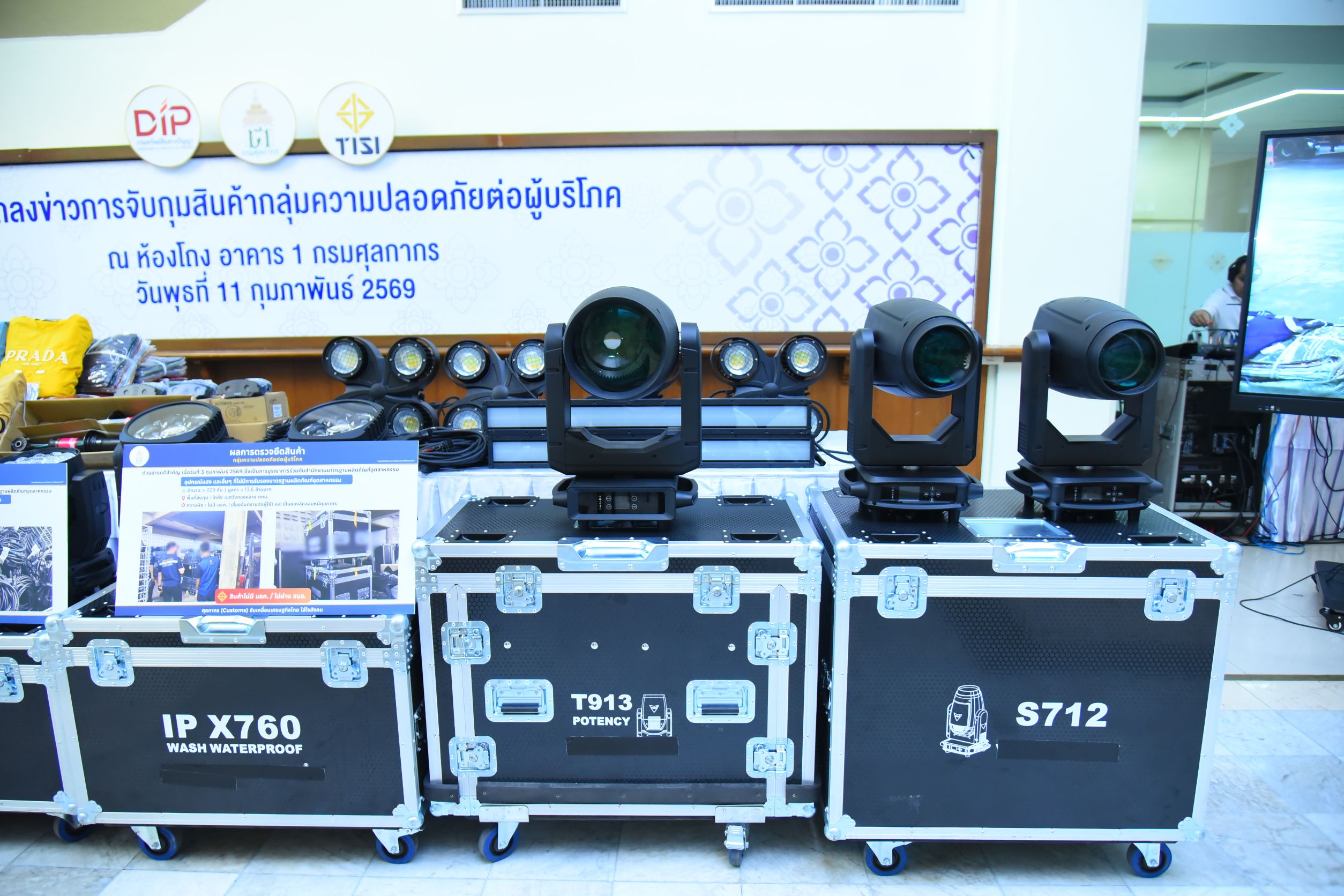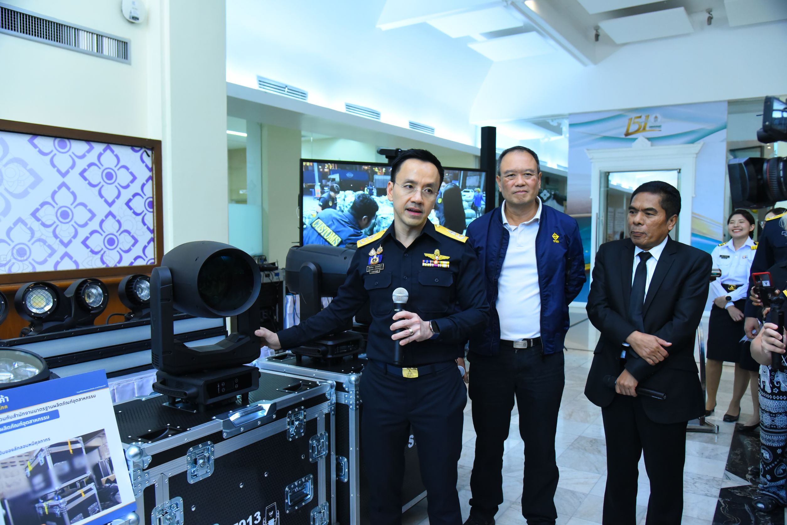วันนี้ (วันพุธที่ 11 กุมภาพันธ์ 2569) เวลา 13.30 น. กรมศุลกากรร่วมกับสำนักงานมาตรฐานผลิตภัณฑ์อุตสาหกรรม (สมอ.) แถลงผลการปฏิบัติการบุกทลายโกดังกลางกรุง ยึดอุปกรณ์ส่องสว่างที่ไม่ได้มาตรฐานผลิตภัณฑ์อุตสาหกรรม (มอก.) พร้อมแถลงผลการบูรณาการกับกรมทรัพย์สินทางปัญญาในการตรวจยึดสินค้านำเข้าที่ละเมิดเครื่องหมายการค้า รวมมูลค่าความเสียหายทางเศรษฐกิจกว่า 237 ล้านบาท ซึ่งผลการดำเนินการดังกล่าวเป็นไปตามนโยบายรัฐบาลที่ให้เข้มงวดกับการป้องกันและปราบปรามสินค้าไม่ได้มาตรฐาน รวมถึงสินค้าละเมิดลิขสิทธิ์และเครื่องหมายการค้า โดยมีนายพันธ์ทอง ลอยกุลนันท์ อธิบดีกรมศุลกากร นายเอกนิติ รมยานนท์ เลขาธิการสำนักงานมาตรฐานผลิตภัณฑ์อุตสาหกรรม และนายอาวุธ วงศ์สวัสดิ์ รองอธิบดีกรมทรัพย์สินทางปัญญา ร่วมกันแถลงข่าว ณ ห้องโถง อาคาร 1 กรมศุลกากร