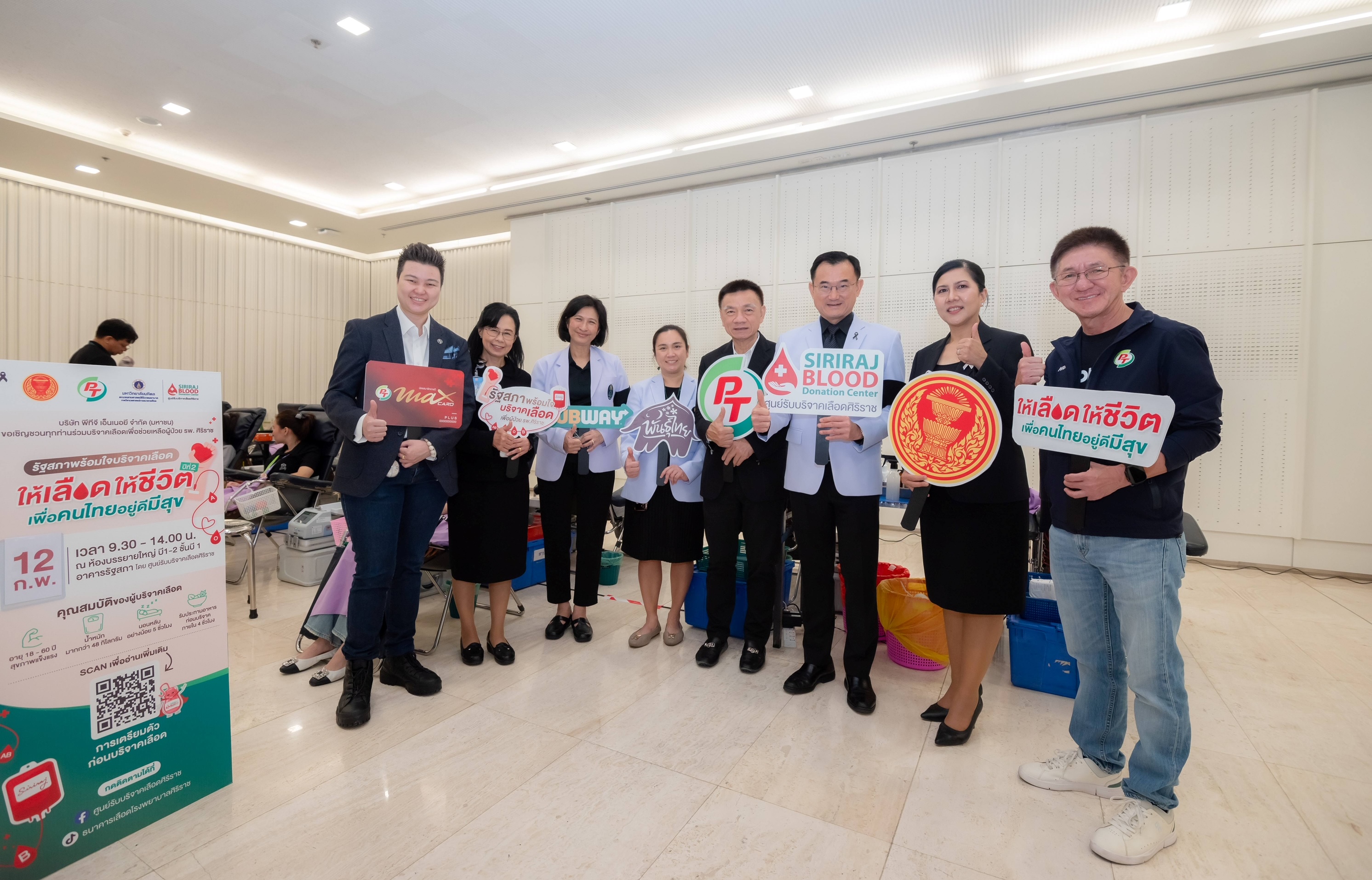 บริษัท พีทีจี เอ็นเนอยี จำกัด (มหาชน) หรือ PTG ตอกย้ำวิสัยทัศน์ "อยู่ดี มีสุข" สานต่อความร่วมมือกับ คณะแพทยศาสตร์ศิริราชพยาบาล มหาวิทยาลัยมหิดล รุกขยายผลโครงการรับบริจาคเลือด ในปี 2569 สู่หน่วยงานภาครัฐระดับประเทศ โดยได้รับเกียรติเปิดหน่วยรับบริจาคเลือดเคลื่อนที่ ณ อาคารรัฐสภา เพื่ออำนวยความสะดวกแก่สมาชิกสภาผู้แทนราษฎร สมาชิกวุฒิสภา ข้าราชการ และเจ้าหน้าที่รัฐสภา ร่วมสร้างปรากฏการณ์แห่งการให้ พร้อมเป็นต้นแบบในการขับเคลื่อนการแก้ปัญหาวิกฤตเลือดสำรองขาดแคลนของประเทศอย่างเป็นรูปธรรม
