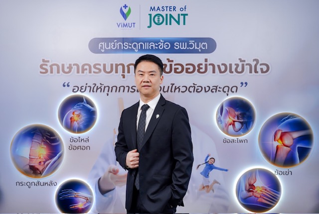 ส่วนศูนย์กระดูกและข้อเข้ามารับมือกับปัญหาสุขภาพที่เกิดจากวิถีชีวิตแบบ “นั่งนาน ยืนนาน ขยับน้อย” ซึ่งคนไทยใช้เวลาอยู่ในท่านั่งเฉลี่ยสูงถึง 13 ชั่วโมงต่อวัน ส่งผลให้ปัญหาโรคกระดูก ข้อ และกล้ามเนื้อเริ่มลุกลามเข้าสู่วัยทำงาน โดยศูนย์กระดูกและข้อ โรงพยาบาลวิมุตมีแพทย์เฉพาะทาง ด้านการผ่าตัดส่องกล้องได้ทุกข้อกระดูก ไม่ว่าจะเป็น ไหล่ ข้อศอก ข้อมือ สะโพก เข่า ข้อเท้า และ กระดูกสันหลัง มุ่งเน้นการดูแลแบบครอบคลุมตั้งแต่การป้องกัน การประเมินอาการ การรักษา ไปจนถึงการฟื้นฟูสมรรถภาพ ออกแบบแนวทางการรักษาเพื่อช่วยให้ผู้ป่วยสามารถกลับมาเคลื่อนไหว ใช้ชีวิต และทำกิจกรรมต่าง ๆ ได้อย่างมั่นใจ สะท้อนแนวคิดการดูแลที่ไม่เพียงมุ่งให้หายจากโรค แต่ให้สามารถกลับมาใช้ชีวิตได้อย่างมีคุณภาพในระยะยาว