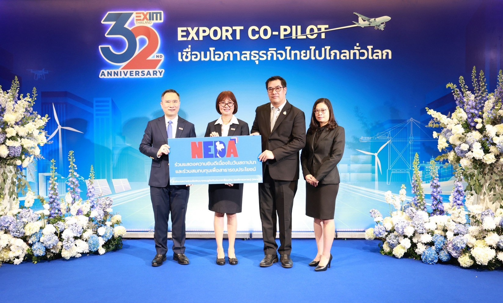 นายกีรติ เวฬุวัน รองผู้อำนวยการสำนักงานความร่วมมือพัฒนาเศรษฐกิจกับประเทศเพื่อนบ้าน (องค์การมหาชน) (สพพ.) ร่วมแสดงความยินดีเนื่องในโอกาสวันคล้ายวันสถาปนา ธนาคารเพื่อการส่งออกและนำเข้าแห่งประเทศไทย (EXIM BANK) ครบรอบ 32 ปี ในโอกาสนี้ สพพ. ได้ร่วมบริจาคสมทบทุนมูลนิธิรามาธิบดี ใน "โครงการอาคารโรงพยาบาลรามาธิบดี และย่านนวัตกรรมโยธี" เพื่อสนับสนุนการพัฒนาโครงสร้างพื้นฐานทางการแพทย์และยกระดับนวัตกรรมด้านสาธารณสุขของไทย โดยมี นายชลัช รัตนบุญนิธิ กรรมการผู้จัดการ EXIM BANK ให้การต้อนรับและเป็นผู้รับมอบ ณ สำนักงานใหญ่ธนาคารเพื่อการส่งออกและนำเข้าแห่งประเทศไทย เมื่อวันที่ 17 กุมภาพันธ์ 2569