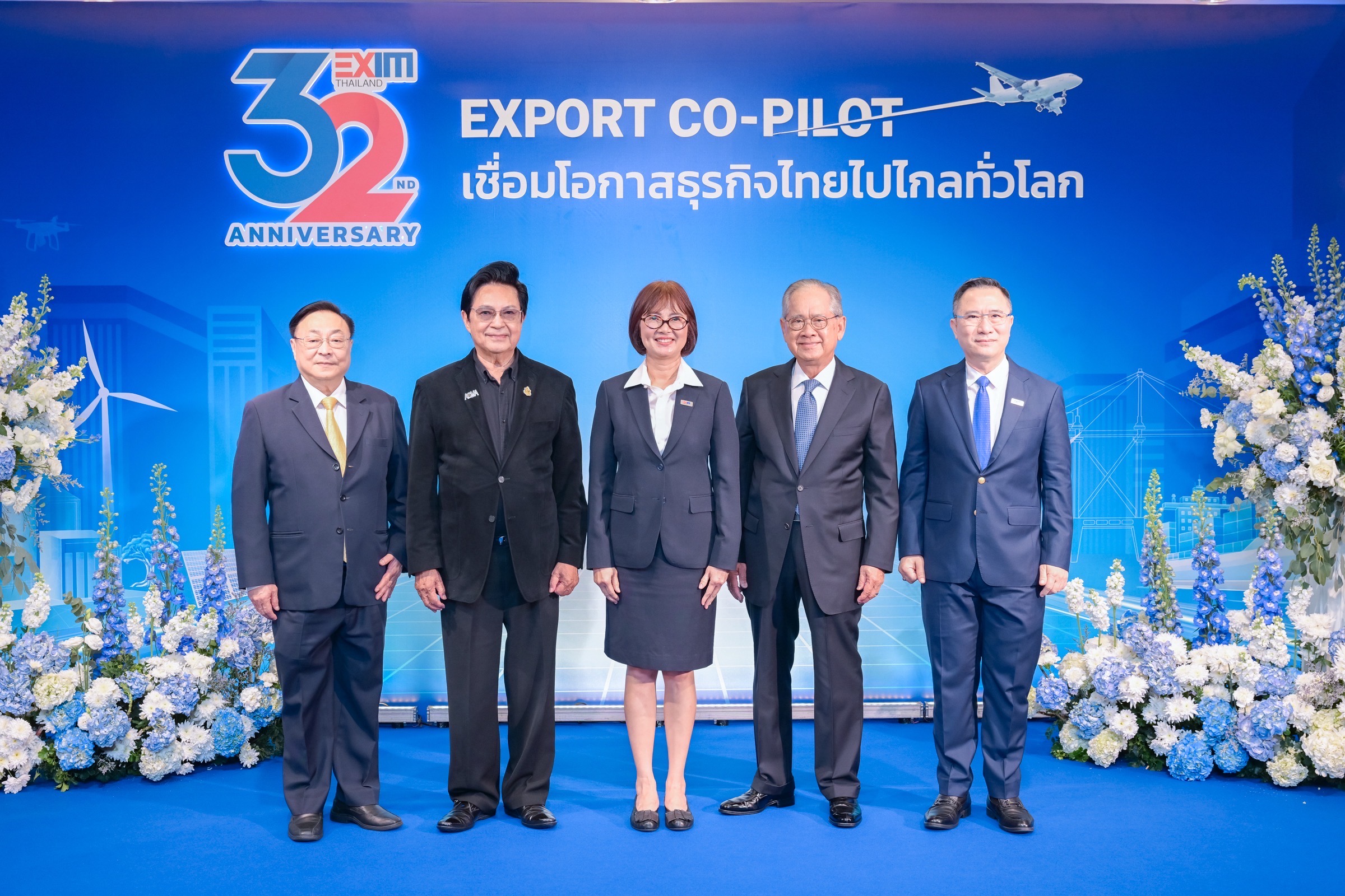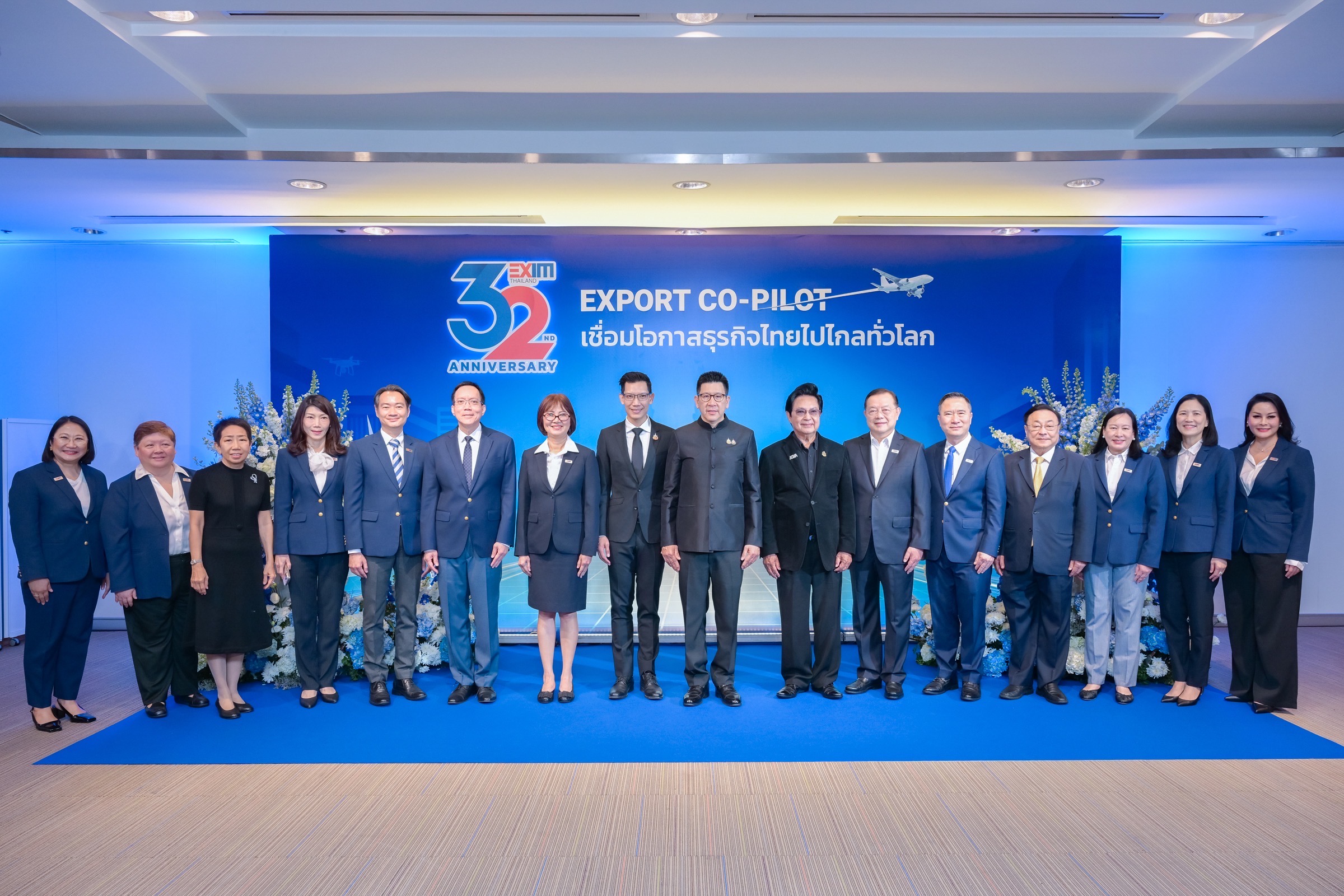 ในโอกาสนี้ คณะกรรมการธนาคารและผู้บริหาร EXIM BANK ชุดปัจจุบันและอดีต รวมถึงนายปกรณ์ มาลากุล ณ อยุธยา อดีตประธานกรรมการธนาคาร ดร.ณรงค์ชัย อัครเศรณี อดีตรัฐมนตรีว่าการกระทรวงพลังงาน นายอาคม เติมพิทยาไพสิฐ อดีตรัฐมนตรีว่าการกระทรวงการคลัง ดร.เอกนิติ นิติทัณฑ์ประภาศ รองนายกรัฐมนตรีและรัฐมนตรีว่าการกระทรวงการคลัง พร้อมด้วยแขกธนาคารจากหน่วยงานภาครัฐและภาคเอกชน ได้ร่วมพบปะสังสรรค์ แลกเปลี่ยนมุมมองและทิศทางการดำเนินงานของ EXIM BANK เพื่อมุ่งสู่เป้าหมายการเป็นสถาบันการเงินชั้นนำที่เชื่อมโอกาสด้านการค้าและการลงทุนตามบริบทโลกอย่างยั่งยืน ภายใต้บทบาท “Export Co-pilot” ที่เข้าใจทิศทางเศรษฐกิจ พร้อมพัฒนานวัตกรรมด้านธุรกิจและบริการอย่างต่อเนื่องเพื่อสนับสนุนเครื่องมือบริหารจัดการธุรกิจและความเสี่ยงทางการค้าระหว่างประเทศอย่างครบวงจร เสริมศักยภาพผู้ประกอบการไทย โดยเฉพาะ SMEs ให้สามารถแข่งขันได้มากขึ้นในเวทีการค้าการลงทุนระหว่างประเทศ ตอบสนองความต้องการและความคาดหวังของลูกค้า ผู้มีส่วนได้ส่วนเสีย และสาธารณชน ขับเคลื่อนการพัฒนาอย่างยั่งยืนของชุมชน สังคม ประเทศชาติ และโลกโดยรวม