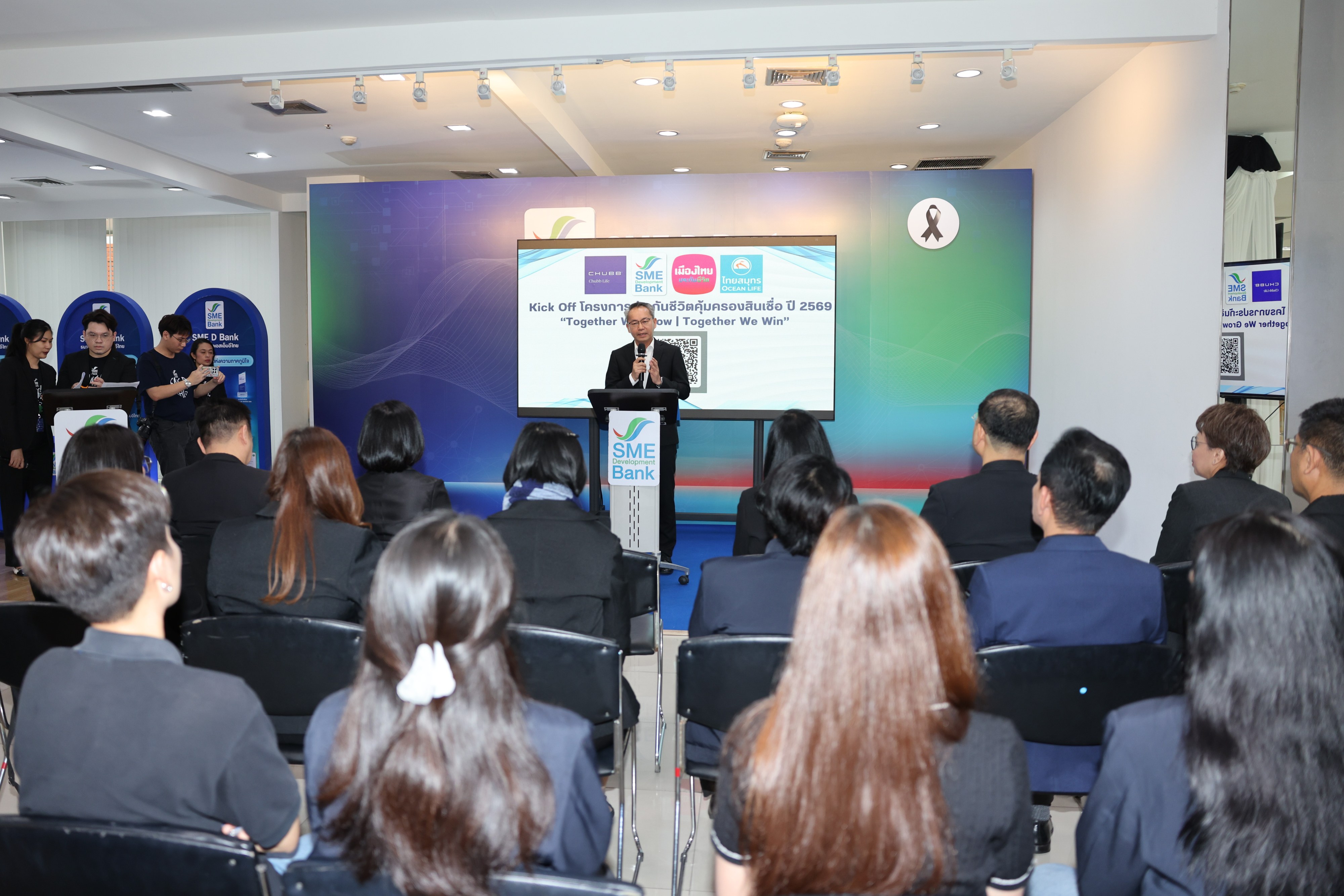 นายพิชิต มิทราวงศ์ กรรมการผู้จัดการ ธนาคารพัฒนาวิสาหกิจขนาดกลางและขนาดย่อมแห่งประเทศ ไทย (ธพว.) หรือ SME D Bank และผู้บริหารธนาคาร พร้อมด้วยผู้บริหารจาก 3 บริษัทประกันชั้นนำ ได้แก่ บริษัท ชับบ์ ไลฟ์ แอสชัวรันส์ จำกัด (มหาชน) บริษัท เมืองไทยประกันชีวิต จำกัด (มหาชน) และ บริษัท ไทยสมุทรประกันชีวิต จำกัด (มหาชน) ร่วมเปิดตัวกิจกรรม "Kick Off โครงการประกันชีวิตคุ้มครองสินเชื่อ ปี 2569" เพื่อเพิ่มทางเลือกให้ลูกค้าสินเชื่อของ SME D Bank ในการบริหารความเสี่ยงทางธุรกิจอย่างเป็นระบบ ผ่านประกันชีวิตคุ้มครองสินเชื่อ อันเป็นเครื่องมือช่วยลดผลกระทบทางการเงินจากเหตุการณ์ไม่คาดคิด เสริมความมั่นใจในการดำเนินธุรกิจ และสร้างเสถียรภาพทางการเงินในระยะยาว ณ ชั้น 1 Co-Working Space อาคาร SME Bank Tower เมื่อวันที่ 18 กุมภาพันธ์ 2569