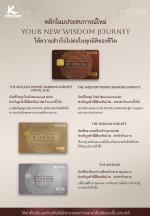 • THE WISDOM INFINITE: บัตรสีทอง แซนด์โกลด์ (Sand Gold) วัสดุพรีเมียมกึ่งเมทัล สำหรับลูกค้า ที่มีสินทรัพย์ 30 – 49.99 ล้านบาท พร้อมอัปเกรดเป็นบัตร VISA INFINITE เพื่อเปิดประสบการณ์ใหม่ โดยได้แรงบันดาลใจจากเม็ดทรายที่เปล่งประกายเมื่อกระทบแสง สะท้อนความมั่นใจจากความสำเร็จ ที่สั่งสมมา พร้อมมุ่งสู่เป้าหมายใหม่