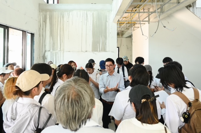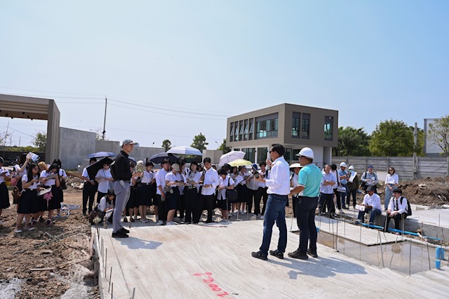 และการเปิดไซต์ก่อสร้างจริงในครั้งนี้จึงเป็นมากกว่าการเยี่ยมชมทั่วไป แต่เป็นการเชื่อมโยงองค์ความรู้จากห้องเรียนสู่ประสบการณ์ภาคสนาม ให้นิสิตได้เห็นภาพกระบวนการทำงานจริง เข้าใจรายละเอียดเชิงโครงสร้างและวัสดุ รวมถึงการบูรณาการเทคโนโลยีพลังงานสะอาดเข้ากับงานสถาปัตยกรรมอย่างเป็นรูปธรรม ซึ่งสอดคล้องกับทิศทางการพัฒนาอสังหาริมทรัพย์ยุคใหม่ที่ต้องคำนึงถึงผู้อยู่อาศัย สิ่งแวดล้อม และการใช้พลังงานอย่างมีประสิทธิภาพควบคู่กัน
