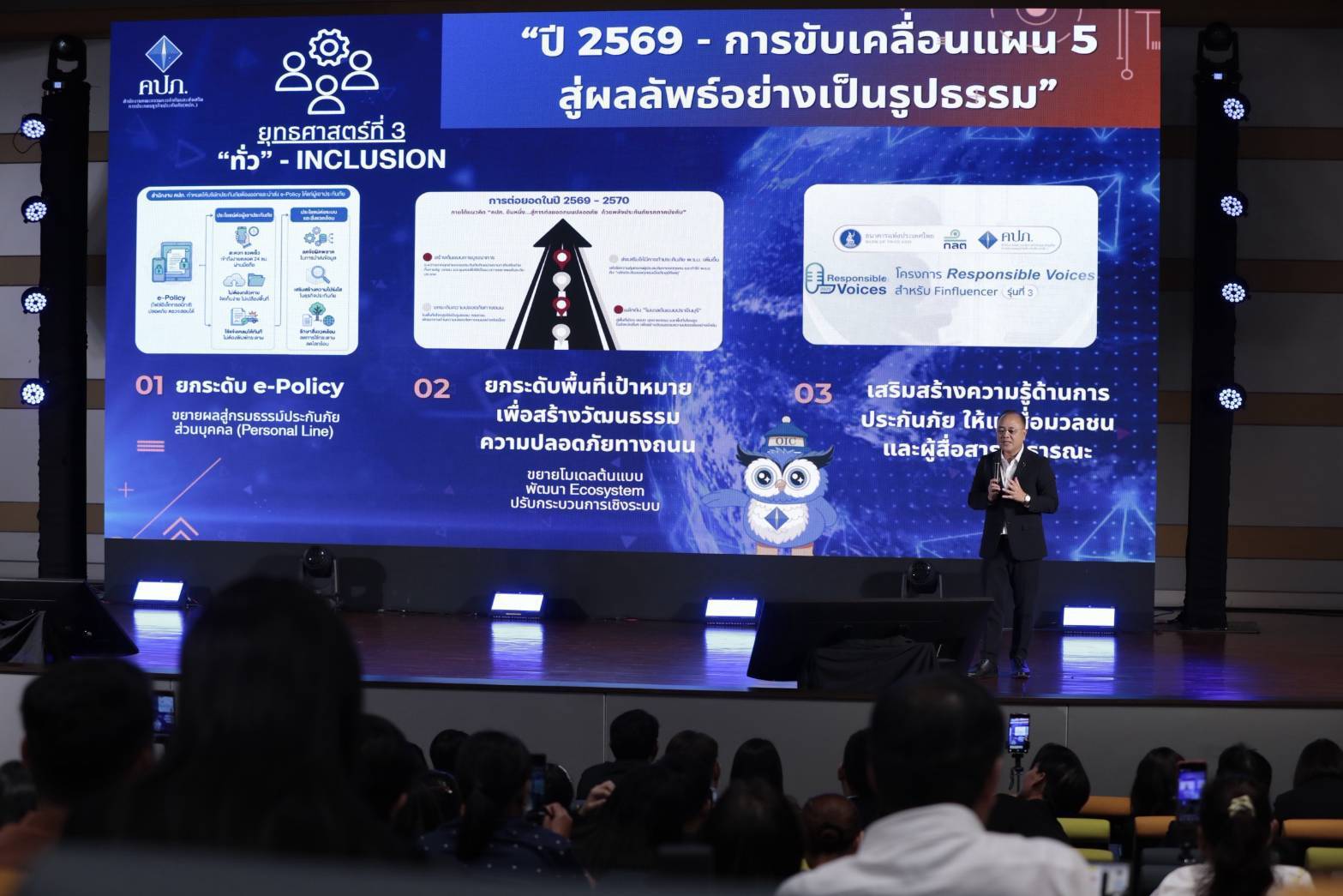 “การดำเนินการในทุกยุทธศาสตร์ ไม่ว่าจะเป็นการยกระดับการกำกับดูแล การพัฒนากลไกรองรับภัยพิบัติ การขยายการเข้าถึงระบบประกันภัย หรือการนำเทคโนโลยีมาใช้ ล้วนมีเป้าหมายเดียวกัน คือการทำให้ประชาชนได้รับประโยชน์อย่างเป็นรูปธรรม ทั้งในด้านความมั่นคงทางการเงิน การได้รับความเป็นธรรม และการเข้าถึงระบบประกันภัยที่มีมาตรฐานและสามารถพึ่งพาได้จริง “เพราะประกันภัยไม่ใช่เพียงกรมธรรม์หนึ่งฉบับ แต่คือหลักประกันความมั่นคงของชีวิต เศรษฐกิจ และประเทศ” และขอขอบคุณสื่อมวลชนและอินฟลูเอนเซอร์ ตลอดจนผู้ที่เกี่ยวข้อง ที่เป็นสื่อกลางในการถ่ายทอดข้อมูล นโยบาย และทิศทางการพัฒนาระบบประกันภัยไปสู่ประชาชนอย่างถูกต้องและทั่วถึง เพื่อให้ประชาชนได้ตระหนักถึงสิทธิประโยชน์ เข้าถึงการประกันภัยอย่างเหมาะสม และใช้การประกันภัยเป็นเครื่องมือในการบริหารความเสี่ยงและสร้างความมั่นคงให้กับชีวิต สำนักงาน คปภ. จะเดินหน้าทำงานร่วมกับทุกภาคส่วน เพื่อสร้างระบบประกันภัยไทยที่มีความมั่นคง โปร่งใส และยั่งยืน และเป็นหลักประกันสำคัญในการดูแลประชาชนและสนับสนุนการพัฒนาเศรษฐกิจของประเทศในระยะยาว” เลขาธิการ คปภ. กล่าวในตอนท้าย