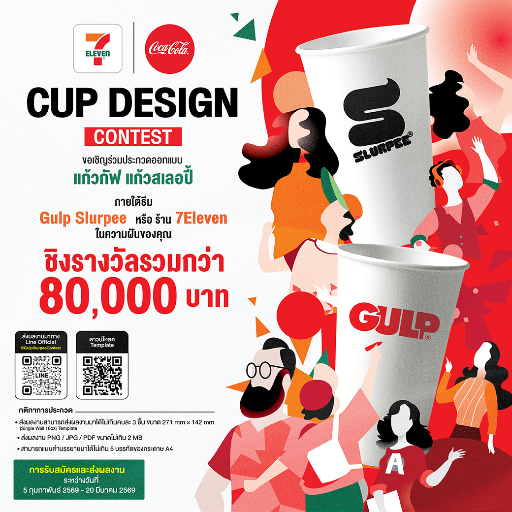 Gulp Slurpee ภายใต้การบริหารงานโดยบริษัทซีพี ออลล์ จำกัด (มหาชน) จับมือ บริษัทไทยน้ำทิพย์ โคคา-โคล่า เปิดพื้นที่สร้างสรรค์ให้คนรุ่นใหม่ นักเรียน นักศึกษา และประชาชนทั่วไปกลุ่ม Gen Z อายุ 15 - 25 ปี ร่วมปล่อยพลังไอเดียในโครงการ Cup Design Contest ออกแบบแก้วเครื่องดื่ม Gulp และ Slurpee ภายใต้หัวข้อ “Gulp Slurpee ความสนุกในสไตล์คุณหรือร้าน 7-Eleven ในความฝันของคุณ” เพื่อชิงเงินรางวัลรวมมูลค่ากว่า 80,000 บาท
