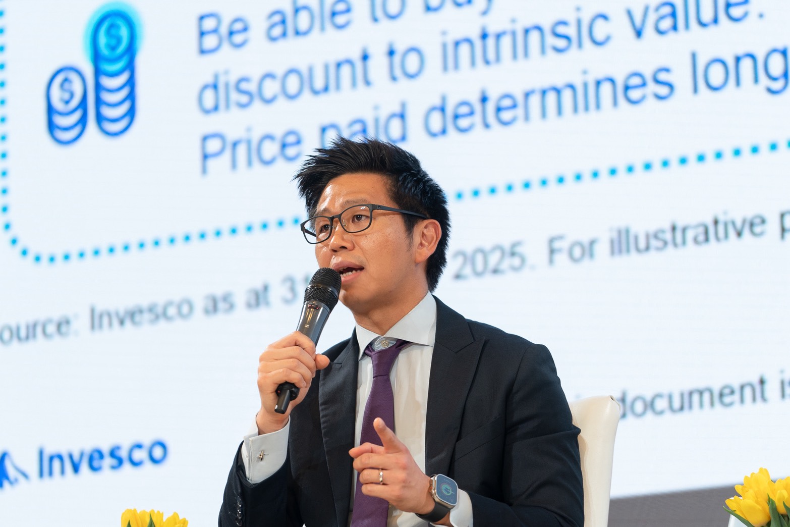 สำหรับการเจาะลึกกองทุนในธีม Portfolio Rebalancing อย่าง KF-GEI-A ถือเป็นทางออกสำคัญสำหรับผู้ที่ต้องการลงทุนหุ้นโลกแต่กังวลความผันผวนของกลุ่ม AI โดย Mr. Ken Lin, CFA, CAIA, Managing Director, Head of Hong Kong and Southeast Asia Intermediary Business, Invesco ได้เผยกลยุทธ์หลักว่า กองทุน KF-GEI-A จะเน้นเฟ้นหาบริษัทระดับผู้นำที่มีกระแสเงินสดแข็งแกร่ง และไม่ไล่ราคาหุ้นเทคโนโลยีที่ Valuation แพงเกินไป ซึ่งกลยุทธ์นี้เองที่คุณวิรัตน์ หัวหน้าทีม Krungsri Investment Intelligence มองว่าเข้ามาช่วยสร้างสมดุลให้กับพอร์ตได้อย่างดีเยี่ยม เพราะนอกจาก 70-100% ของกองทุนจะเน้นลงทุนในหุ้นที่มีลักษณะเป็น “Dividend Compounder” ที่บริษัทสามารถจ่ายปันผลเติบโตได้อย่างสม่ำเสมอ การมีสัดส่วนหุ้นเทคน้อยกว่าตลาดยังช่วยลดความผันผวนได้อย่างชัดเจน เห็นได้จากตั้งแต่ต้นปีที่ผ่านมาที่ตลาดเทขายหุ้นกลุ่มเทคโนโลยีอย่างหนัก กองทุนนี้กลับแทบไม่ได้รับผลกระทบ ซ้ำยังสามารถทำผลตอบแทนบวกสวนทางตลาดได้อีกด้วย