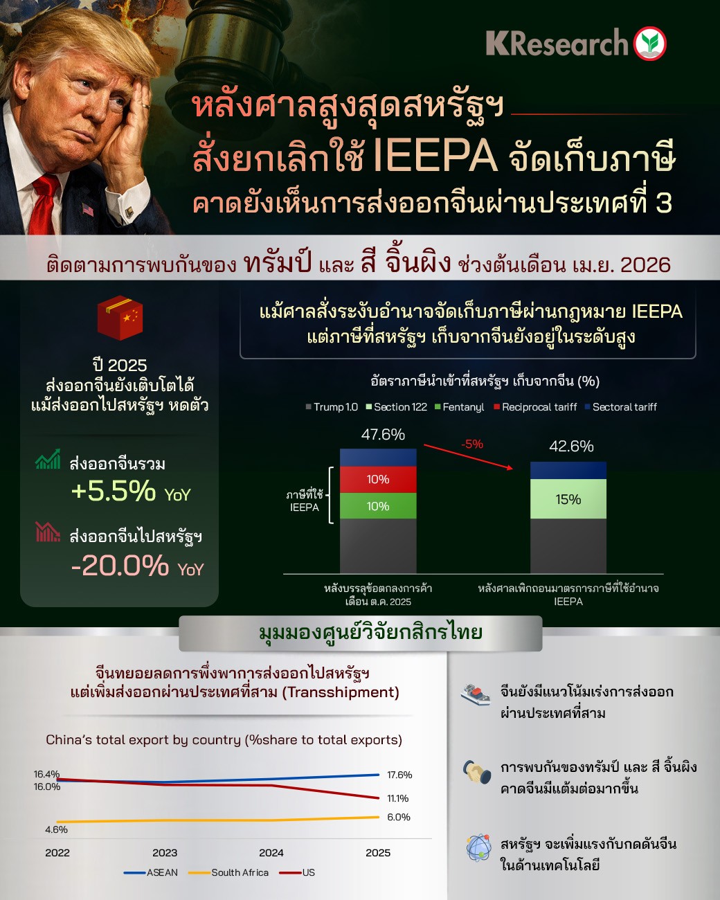 • สหรัฐฯ ใช้อำนาจตามมาตรา 122 จัดเก็บภาษีชั่วคราวแทนในอัตรา 15% (มีระยะเวลาไม่เกิน 150 วัน)