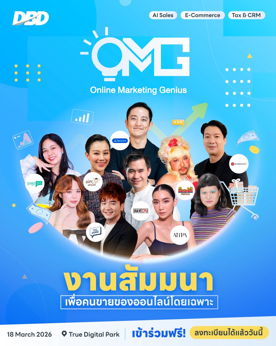 กรมพัฒนาธุรกิจการค้า เตรียมเปิดหลักสูตรปั้นร้านค้าออนไลน์ขั้นเทพ รุ่นที่ 6 (Online Marketing Genius : OMG#6) อัปสกิลการตลาดออนไลน์ สร้างรายได้ทะลุล้านจากการใช้ AI เป็นเครื่องมือช่วยยกระดับร้านค้าออนไลน์ให้ผู้ประกอบการฐานรากทั่วประเทศ พร้อมคัดเลือกผู้ประกอบการหัวกะทิ และเฟ้นหาสุดยอด Thailand E-Commerce Genius แห่งปี 2026 เพียงหนึ่งเดียว เปิดรับสมัครผู้สนใจเข้าร่วมอบรมตั้งแต่บัดนี้ - 16 มีนาคม 2569 ทาง https://page.futuretrend.co/OMG2026