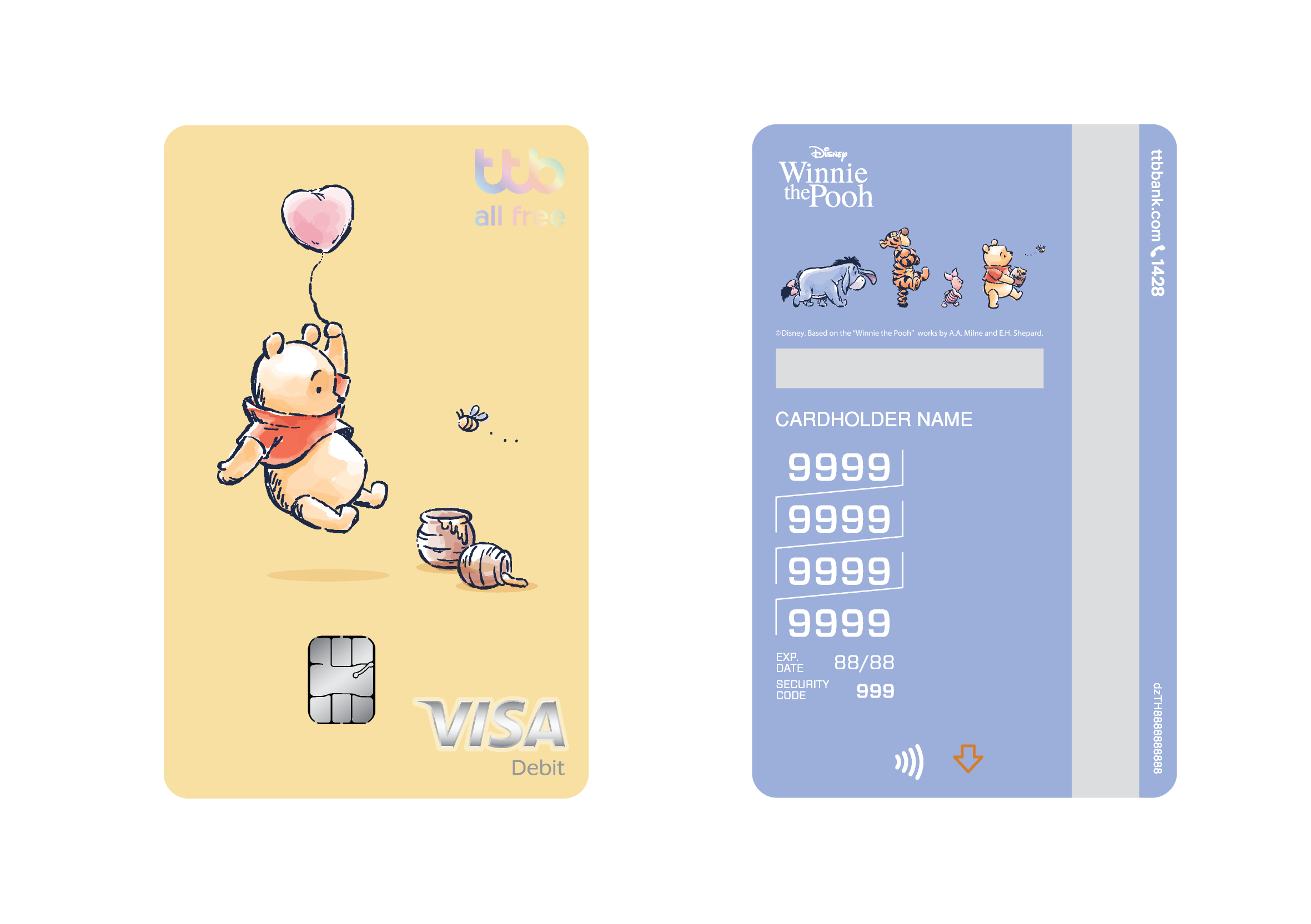 สำหรับลวดลายคอลเลกชันใหม่ ทีทีบีนำ “หมีพูห์” ตัวละครสีเหลืองกับโถน้ำผึ้งคู่ใจและผองเพื่อนจากป่าร้อยเอเคอร์ที่กำลังเฉลิมฉลองครบรอบ 100 ปี โดดเด่นในภาพลักษณ์ที่สดใส เป็นที่ชื่นชอบ ครองใจและมีฐานแฟนเพิ่มขึ้นอย่างต่อเนื่องทั่วโลก มาอวดโฉมดีไซน์ใหม่บนหน้าบัตรที่มีให้เลือกทั้งหน้าบัตรเครดิต ttb Disney ลาย “Pooh Blooms” และ บัตรเดบิต ttb all free Disney ลาย “Winnie the Pooh” พร้อม e-Slip จำนวน 3 ลาย ดีไซน์น่ารักสดใสเพื่อมอบประสบการณ์อัศจรรย์โอนเงินได้ฟินยิ่งกว่าเดิม และคุ้มค่าเหนือกว่าใครกับสิทธิประโยชน์ โปรโมชันพิเศษที่ครอบคลุมการใช้จ่ายในชีวิตประจำวันสำหรับลูกค้าใหม่และผู้ใช้บัตรปัจจุบัน โดยคาดหวังว่าจะเป็นอีกหนึ่งปัจจัยที่ผลักดันยอดผู้ใช้บัตรของทีทีบีให้เติบโตต่อเนื่องในปี 2569