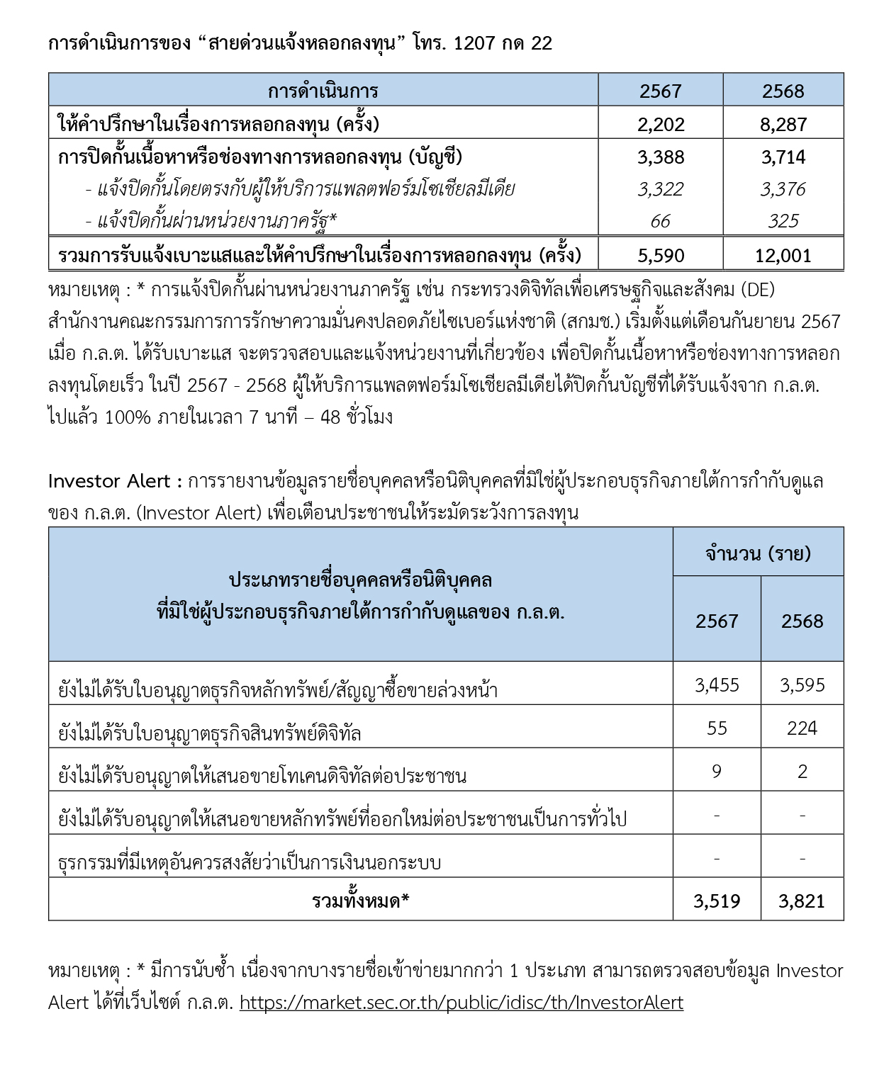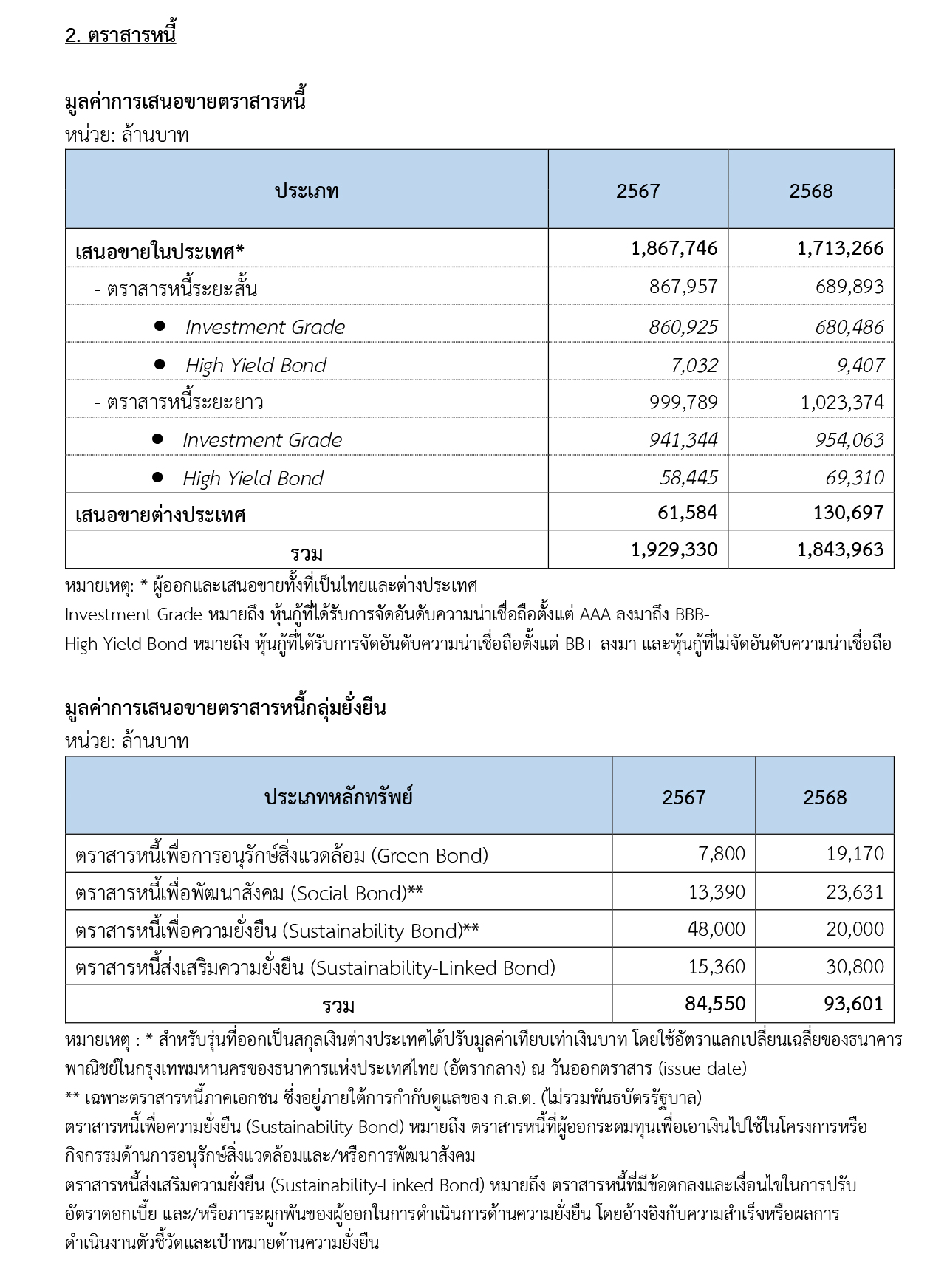 ก.ล.ต. สรุปสถิติสำคัญปี 68 ชี้ผลิตภัณฑ์การลงทุนในกลุ่มความยั่งยืนได้รับความสนใจเพิ่มขึ้นต่อเนื่อง ทั้งตราสารหนี้และกองทุนรวม