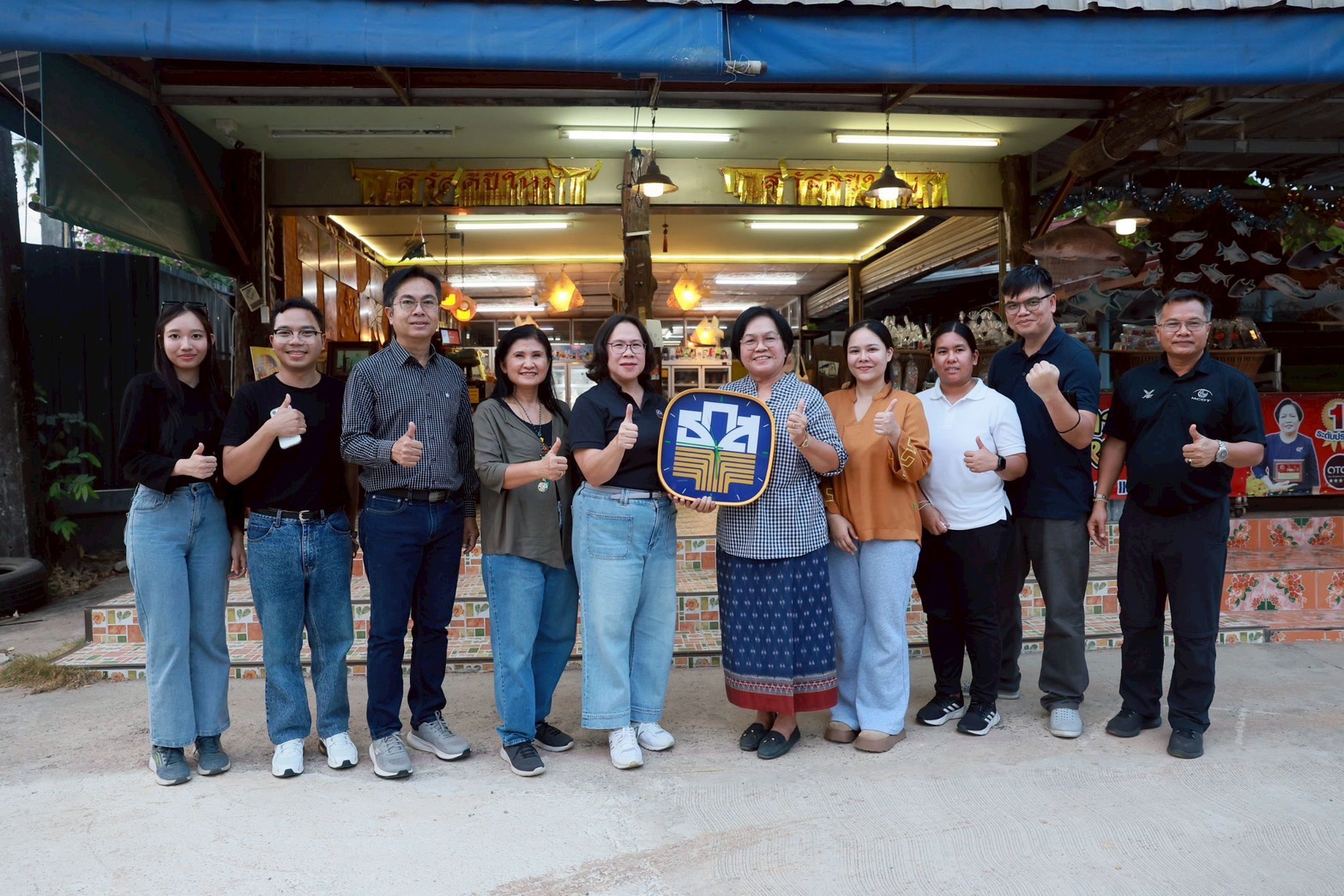 จากนั้นได้เยี่ยมชมวิสาหกิจชุมชนแปรรูปอาหารจากปลาบ้านด่านใหม่ ตำบลโขงเจียม อำเภอโขงเจียม จังหวัดอุบลราชธานี ผู้ผลิตปลาส้มและผลิตภัณฑ์แปรรูปจากปลาแม่น้ำโขงภายใต้แบรนด์ “ปลาส้มครูหยอย” ที่มีการนำวัตถุดิบในท้องถิ่นมาเพิ่มมูลค่าผ่านกระบวนการแปรรูป พัฒนาบรรจุภัณฑ์ที่ได้มาตรฐาน และสร้างอัตลักษณ์สินค้า เพื่อรองรับตลาดสมัยใหม่ ผ่านการรับรองจากสำนักงานคณะกรรมการอาหารและยา (อย.) จนได้รับการรับรองผลิตภัณฑ์ OTOP ทุกระดับดาว โดยนอกจากการจำหน่ายให้แก่นักท่องเที่ยวในพื้นที่แหล่งท่องเที่ยวสำคัญของอำเภอโขงเจียม และพื้นที่อื่น ๆ ในจังหวัดอุบลราชธานี เพื่อเป็นของฝากแล้ว ผลิตภัณฑ์ปลาส้มจากชุมชนยังสามารถก้าวสู่ตลาดระดับประเทศและต่อยอดสู่ตลาดต่างประเทศได้อีกด้วย