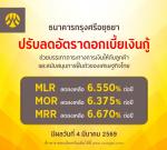 • อัตราดอกเบี้ยเงินกู้ลูกค้ารายย่อยชั้นดี (Minimum Retail Rate หรือ MRR) ปรับลดลงจาก 6.770% เป็น 6.670%