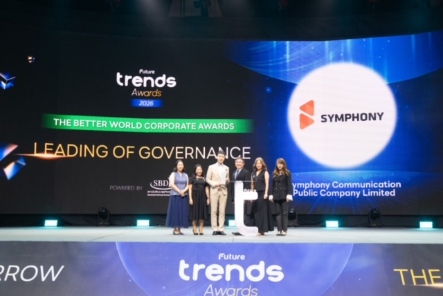 บริษัท ซิมโฟนี่ คอมมูนิเคชั่น จำกัด (มหาชน) หรือ SYMPHONY (SYMC) ประกาศความสำเร็จครั้งสำคัญ ด้วยการได้รับรางวัลเกียรติยศ "องค์กรสุดยอดผู้นำเทรนด์และความเป็นเลิศด้าน ESG...The Better World Corporate Award" ในสาขา “องค์กรยอดเยี่ยมด้านการกำกับดูแลกิจการ...Leading of Governance” จากเวที Future Trends Award 2026 ตอกย้ำความเป็นองค์กรแห่งอนาคตที่ขับเคลื่อนด้วยธรรมาภิบาล อันเป็นรากฐานการพัฒนาองค์กรให้แข็งแกร่งและยั่งยืน