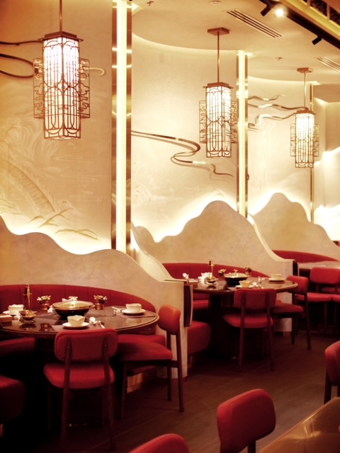 ด้านการออกแบบภายในร้านสะท้อนตำนานและความประณีตของแบรนด์ผ่านโทนสีทองและแดงที่สื่อถึงความพรีเมียม จุดเด่นกลางร้านเป็น Modern Art Installation ที่ได้แรงบันดาลใจจากเส้นบะหมี่หยก ผสมผสานกับลวดลายของทิวเขาบนผนัง เพดานออกแบบโค้งมนคล้ายเมฆบนท้องฟ้า
