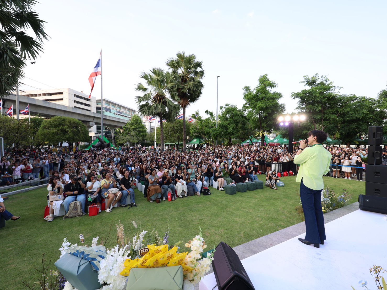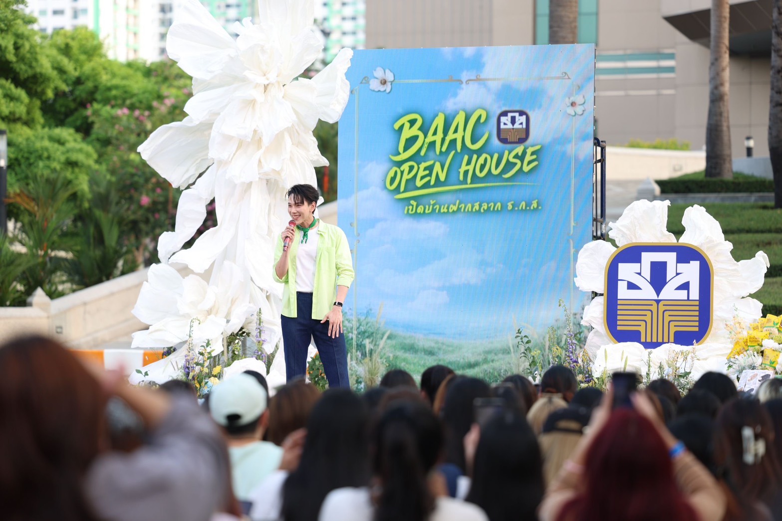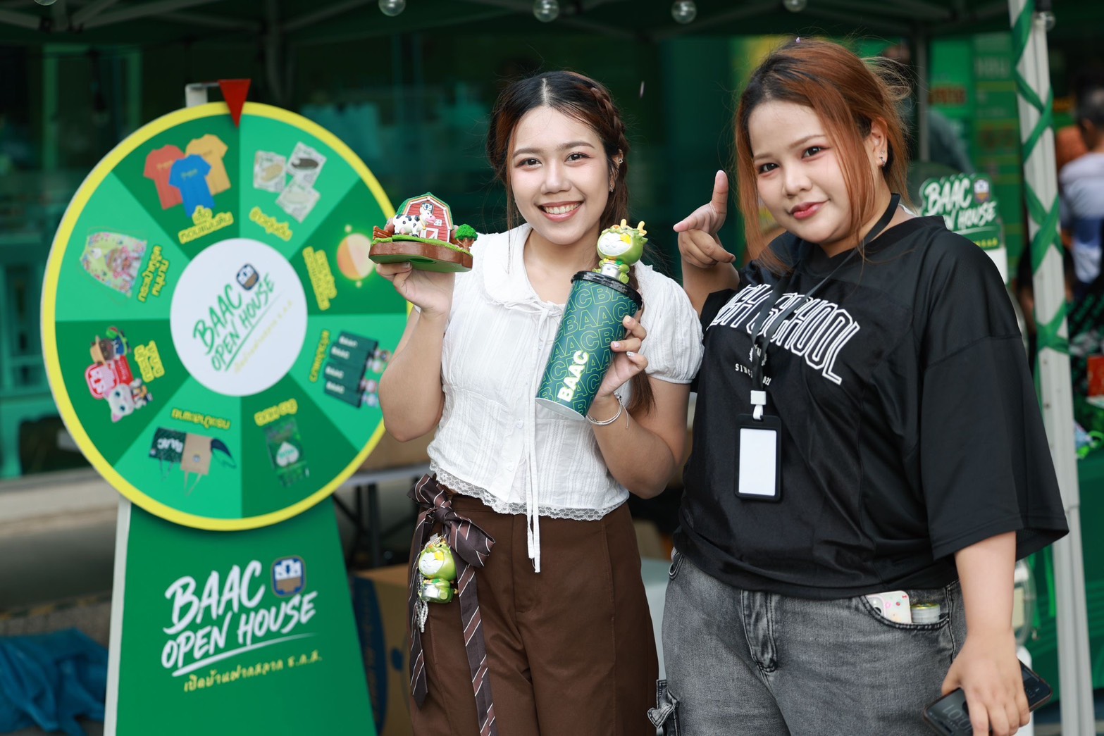 นายฉัตรชัย ศิริไล ผู้จัดการธนาคารเพื่อการเกษตรและสหกรณ์การเกษตร (ธ.ก.ส.) ต้อนรับประชาชนที่มาเข้าร่วมกิจกรรม BAAC Open House เปิดบ้านฝากสลาก ธ.ก.ส. เพื่อเปิดประสบการณ์ใหม่ในการเสริมสร้างพฤติกรรมการออมเงินให้กับคนเมือง พร้อมนำเสนอผลิตภัณฑ์และบริการทางการเงินที่ตอบโจทย์ไลฟ์สไตล์ในยุคปัจจุบัน โดยภายในงานมีบูธให้บริการทางการเงินและสิทธิพิเศษสำหรับผู้เปิดบัญชีและฝากสลากออมทรัพย์ ธ.ก.ส. อาทิ สลากออมทรัพย์ ธ.ก.ส. ชุดกระพ้อมทองและชุดกระพ้อมเงิน ที่มาพร้อมโปรโมชันสุดพิเศษเฉพาะในงาน ได้แก่ เมื่อฝากสลากออมทรัพย์ชุดใดก็ได้ จำนวน 20,000 บาท รับหมอนผ้าห่ม Agri Animal จำนวน 1 ชิ้น คละแบบ เมื่อฝากสลากฯ 50,000 บาท รับหมอนผ้าห่ม Agri Animal จำนวน 2 ชิ้น คละแบบ และเมื่อฝากสลากฯ 1,000,000 บาท รับหมอนผ้าห่ม Agri Animal จำนวน 4 ชิ้นครบเซ็ต ไม่ซ้ำแบบ และเมื่อทำธุรกรรมที่เคาน์เตอร์สาขาภายในงาน (ยกเว้นการปรับสมุดและถอนเงิน) รับคูปองลุ้นของที่ระลึกจาก ธ.ก.ส. สุด Limited Edition กับกิจกรรม Happy Hour Happy Surprise ให้ผู้เข้าร่วมงานได้ร่วมสนุกทุกชั่วโมง พร้อมลุ้นรับของที่ระลึกสุดพิเศษจาก ธ.ก.ส. และยังมีกิจกรรมพิเศษ DIY สมุดโน้ตเล่มเดียวในโลก เมื่อฝากสลากออมทรัพย์ ธ.ก.ส. ชุดขวัญถุง ไม่จำกัดขั้นต่ำ ณ เคาน์เตอร์สาขาภายในงาน รับสมุดปฏิทินนักออม ธ.ก.ส. พร้อมกิจกรรม DIY ทั้งนี้ ภายในงานยังมีการออกบูธร้านอาหารและเครื่องดื่ม รวมถึงการจำหน่ายผลิตภัณฑ์แกลมเกษตรจากลูกค้า ธ.ก.ส. ที่มาร่วมสร้างสีสันและให้บริการแก่ผู้เข้าร่วมงาน อาทิ โกโก้และเครปในตำนาน ผลิตภัณฑ์แกลมเกษตร ทั้งข้าวโพดมัมมี่ (freeze dried) ที่นำข้าวโพดหวานมายกระดับเพิ่มมูลค่าผลผลิตด้วยกระบวนการ freeze dried สามารถรักษาคุณค่าทางสารอาหารทั้งรสชาติ สี กลิ่น เก็บรักษาไว้ได้นานถึง 25 ปี โดยไม่ต้องใส่สารกันบูด รวมทั้งมีการพัฒนาบรรจุภัณฑ์จนได้มาตรฐาน A-Product ติดต่อได้ที่ ศูนย์เรียนรู้กสิกรรมไร้สารพิษละโว้ธานี จังหวัดลพบุรี โทร. 080 666 3311 และโจ๊กข้าวหอมภูเขาไฟ โจ๊กกึ่งสำเร็จรูปที่ผลิตจากข้าวหอมมะลิแท้ มีกลิ่นหอมเฉพาะตัว เนื้อสัมผัสนุ่มละมุน ที่ผลิตจากภูมิปัญญาและเต็มไปด้วยคุณภาพจากแหล่งปลูกข้าวบุรีรัมย์ อิ่มง่ายใน 2 นาที เพียงใส่น้ำร้อน ตอบโจทย์ผู้บริโภคยุคใหม่ที่ใช้ชีวิตเร่งรีบ แต่ยังได้รับประทานอาหารที่เต็มไปด้วยคุณค่าทางสารอาหาร ติดต่อได้ที่ สหกรณ์การเกษตรเพื่อการตลาดลูกค้า ธกส บุรีรัมย์ จำกัด โทร. 044 690 255