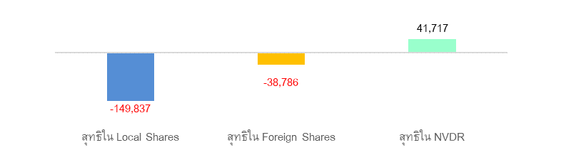 เมื่อพิจารณามูลค่าการซื้อขายสุทธิของนักลงทุนต่างประเทศในปี 2568 ที่นักลงทุนต่างประเทศขายสุทธิ 107,096 ล้านบาทในตลาดหุ้นไทย (ตารางที่ 4) พบว่า นักลงทุนต่างประเทศขายสุทธิใน Local Shares สูงถึง 190,724 ล้านบาท  และขายสุทธิใน Foreign shares เล็กน้อยประมาณ 3,467 ล้านบาท ขณะที่ซื้อสุทธิสะสมใน NVDR 87,095 ล้านบาท (ภาพที่ 5) สะท้อนว่า นักลงทุนต่างประเทศยังคงสนใจลงทุนในตลาดหุ้นไทย โดยทำกำไรผ่าน local shares และ NVDR และยังคงรักษาระดับการลงทุนในระยะยาวในตลาดหุ้นไทย ด้วยการถือครอง Foreign shares