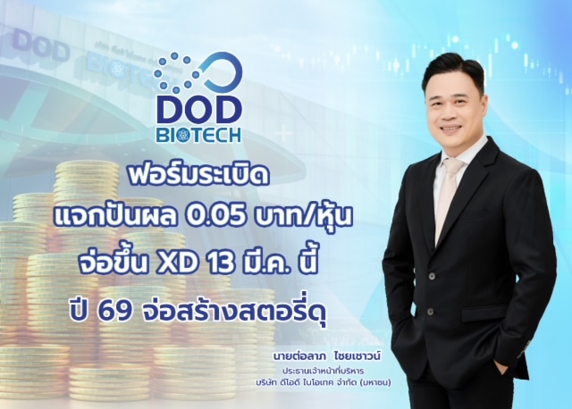 แว่วมาว่า...ใครมัวแต่ลังเลระวัง "ตกขบวน" ขนเงินทองเข้ากระเป๋าไม่ทันแล้วจะหาว่าไม่เตือน ล่าสุดหุ้นตัวตึงไซส์กลางอย่าง บมจ.ดีโอดี ไบโอเทค (DOD) ผู้ผลิตผลิตภัณฑ์เสริมอาหารมือหนึ่งด้าน ODM ระดับต้นๆ ของประเทศ ออกมาโชว์ฟอร์มระเบิดกำไรปี 68 ทะยานกว่าจำนวน 59.58 ล้านบาท เพิ่มขึ้น 137.39% (YoY) จนทำให้บอร์ดไฟเขียวปันผลในอัตรา 0.05 บาทต่อหุ้นทันที และเพื่อเป็นการตอกย้ำความสำเร็จ งานนี้ CEO “ต่อลาภ ไชยเชาวน์” ต้องออกมาย้ำนักลงทุนด้วยตัวเองว่า... ใครอยากได้เงินปันผลไปใช้นอนฟินๆ ต้องรีบกวาดเข้าพอร์ตแบบด่วน ๆ เพราะบริษัทฯ เตรียม XD วันที่ 13 มี.ค. นี้แล้ว เอาเป็นว่าใครซื้อทันเตรียมรับเงินเข้าบัญชีสวยๆ วันที่ 5 พ.ค. 69 ได้เลย แค่นั่นยังไม่พอเพราะมีพราย แอบกระซิบว่าปี 69 DOD เตรียมสตอรี่แบบปัง ปัง ทั้งเปิดไลน์ผลิตใหม่, กวาดสินค้าฮิตติดกระแสแบบ ครบวงจร หวังดันกำไรให้กระฉูด แต่ที่ทำเอาขาใหญ่หูผึ่งสุดๆ คือแผนซุ่มเจรจาปิดดีลกับลูกค้าอีกหลาย แหม..ได้ยินแบบนี้แล้วสายเทรดเตรียมตั้งหน้าตั้งตารอฟังข่าวดีเพียบ หรือใครเป็นสายทำธุรกิจที่อยากมี แบรนด์สุดปังเป็นของตัวเองถ้าพลาด DOD ไป... ระวังจะคุยกับคนรวยไม่รู้เรื่องนะจ๊ะ!