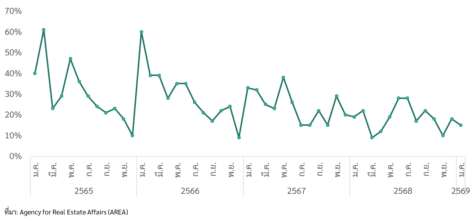 รูปที่ 1 อัตราการจองซื้อที่อยู่อาศัยเปิดใหม่ในเดือนมกราคม 2569 สะท้อนภาพที่ยังชะลอตัว