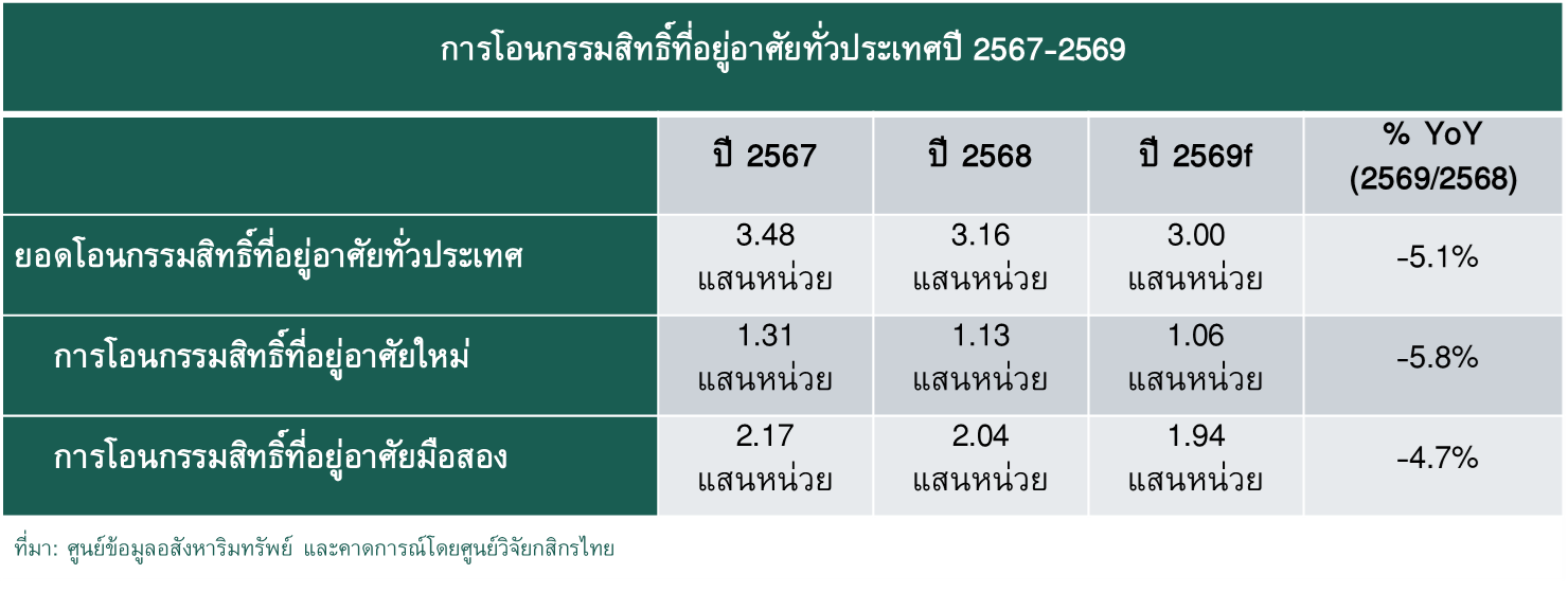 ตาราง ประมาณการการโอนกรรมสิทธิ์ที่อยู่อาศัยทั่วประเทศปี 2569