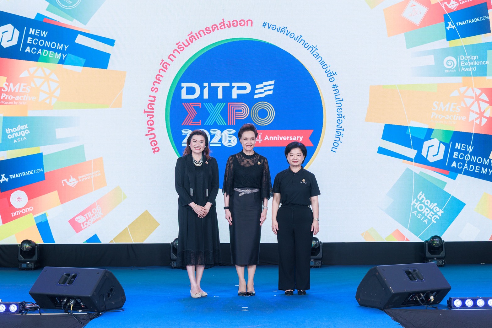 นางศุภจี สุธรรมพันธุ์ รัฐมนตรีว่าการกระทรวงพาณิชย์ เป็นประธานในพิธีเปิดงาน DITP EXPO 2026 โดยมีนางสุนันทา กังวาลกุลกิจ อธิบดีกรมส่งเสริมการค้าระหว่างประเทศ (DITP) กระทรวงพาณิชย์ และนายชลัช รัตนบุญนิธิ กรรมการผู้จัดการ ธนาคารเพื่อการส่งออกและนำเข้าแห่งประเทศไทย (EXIM BANK) เข้าร่วมงาน จัดโดย DITP ในโอกาสครบรอบ 74 ปี ระหว่างวันที่ 11-13 มีนาคม 2569 เพื่อส่งเสริมการเพิ่มขีดความสามารถในการแข่งขันของผู้ประกอบการไทย ผ่านการเข้าถึงข้อมูลตลาด โอกาสทางธุรกิจ และเครื่องมือทางการเงินที่ช่วยเสริมศักยภาพการส่งออก ณ กระทรวงพาณิชย์ เมื่อวันที่ 12 มีนาคม 2569
