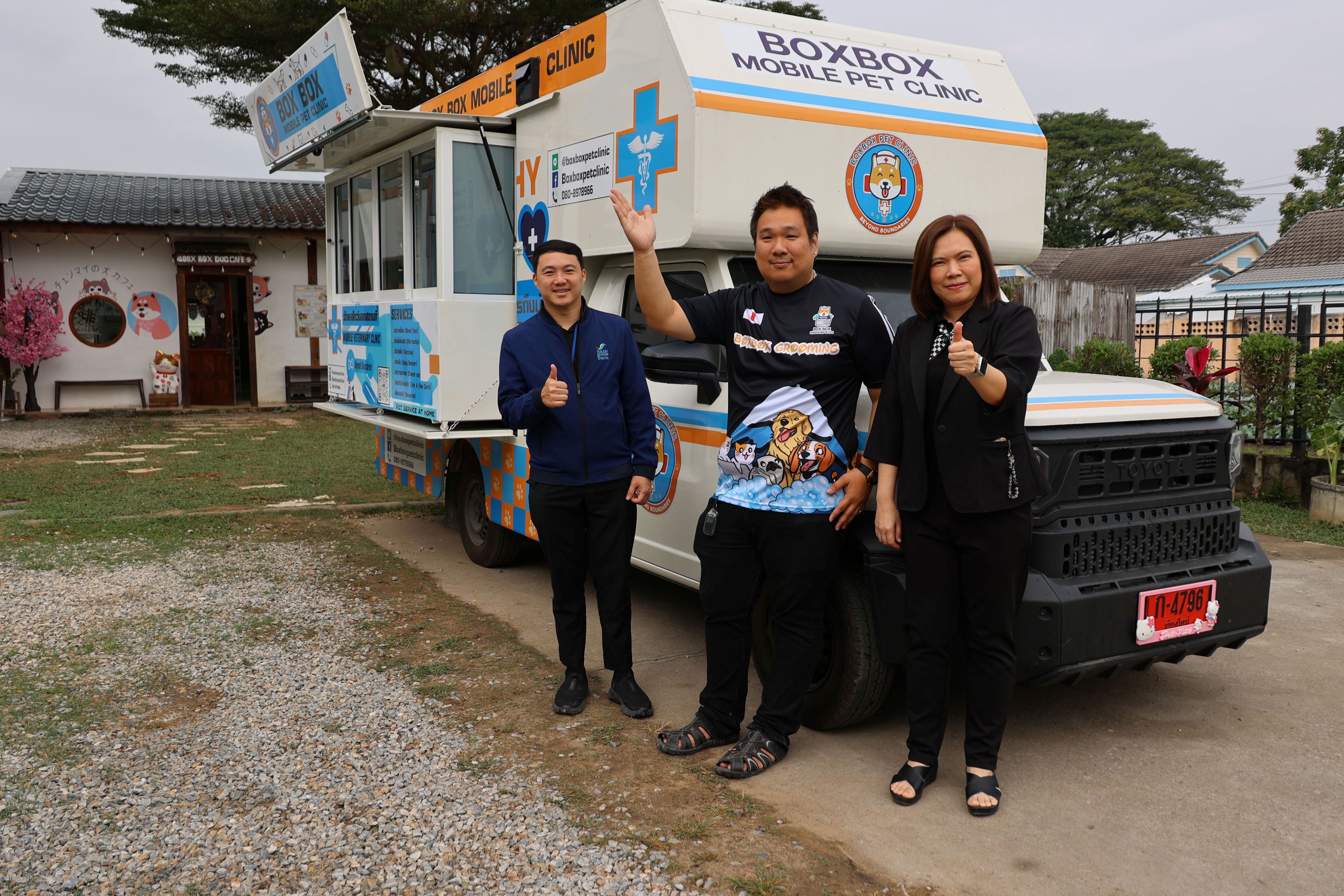 และ 3. “BoxBox Pet Clinic” คลินิกสัตวแพทย์เคลื่อนที่ ดูแลรักษาอาการเจ็บป่วยเบื้องต้น เช่น ไข้ ไอ จาม ปวดหัว เป็นต้น โดยสัตวแพทย์ที่มีความรู้ สามารถเดินทางไปให้บริการถึงบ้านลูกค้าในพื้นที่ จ.เชียงใหม่ ช่วยลดภาระ ลดเวลา และเพิ่มความรวดเร็วในการดูแลสัตว์เลี้ยง