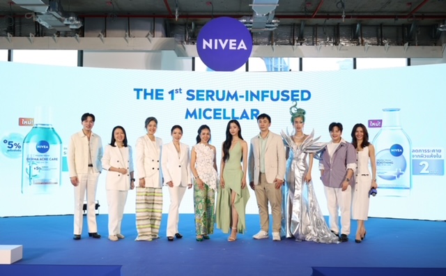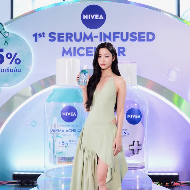 นีเวีย (NIVEA) ตอกย้ำความเป็นผู้นำด้านการดูแลผิวหน้า เปิดตัวนวัตกรรมใหม่ "NIVEA Derma Acne Care Micellar Water +5% Serum" ไมเซลล่าวอเตอร์สูตรใหม่ที่ผสานเซรั่มเข้มข้นถึง 5% เพื่อมอบประสิทธิภาพการทำความสะอาดพร้อมการบำรุงผิวในขั้นตอนเดียว ยกระดับการทำความสะอาดผิวให้มากกว่าการลบเมคอัพ และยังช่วยดูแลปัญหาผิวไปพร้อมกัน โดยจัดงาน “NIVEA : The 1st SERUM-INFUSED MICELLAR” ที่จำลองโลกแห่งนวัตกรรมการดูแลผิวของนีเวียอย่างเต็มรูปแบบ และเปิดตัวพรีเซ็นเตอร์คนล่าสุด “ตู – ต้นตะวัน ตันติเวชกุล” มาร่วมถ่ายทอดพลังของผิวใสมั่นใจในแบบฉบับคนรุ่นใหม่