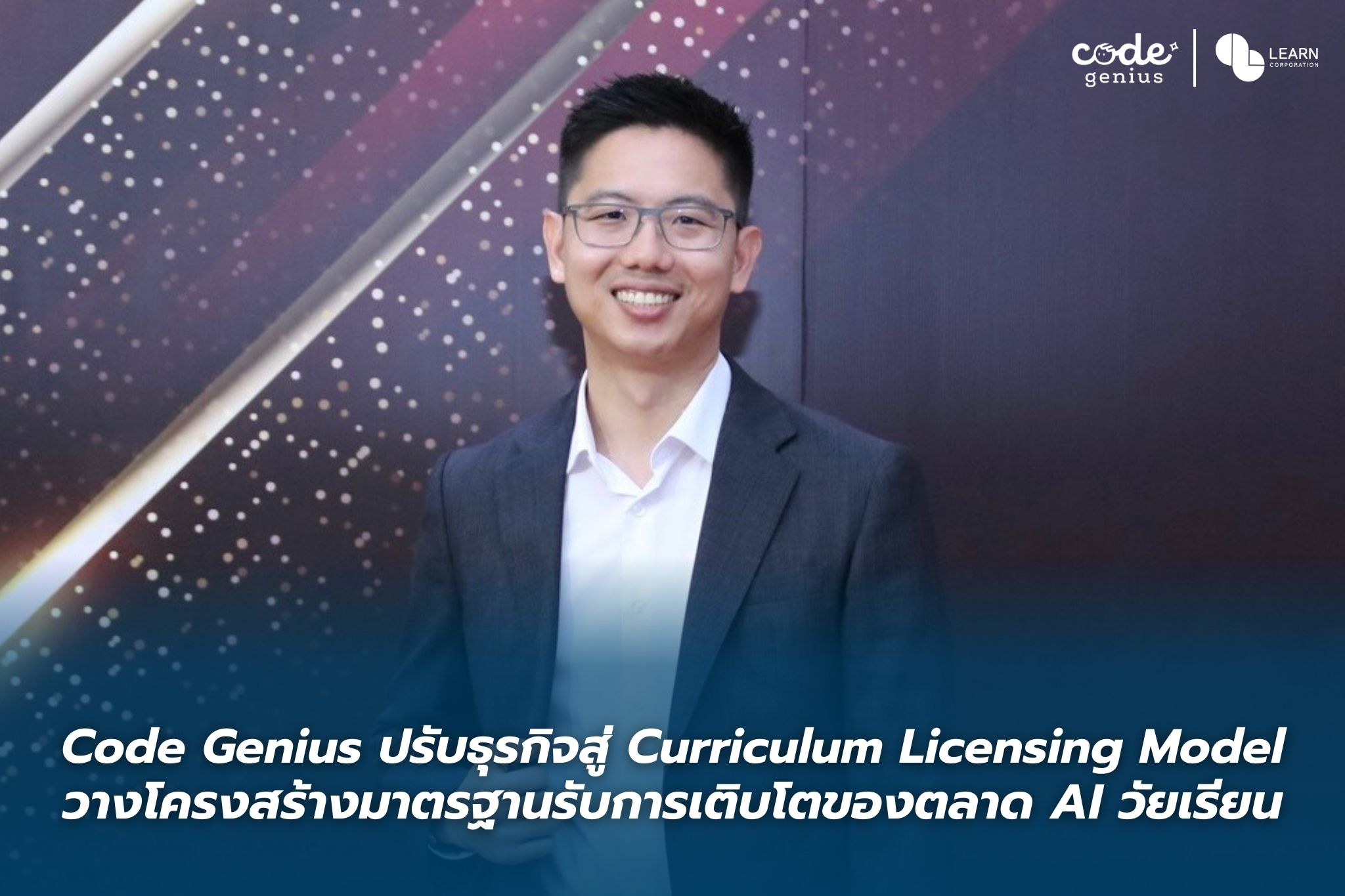 ตลอดระยะเวลากว่า 7 ปีที่ผ่านมา Code Genius มุ่งพัฒนาหลักสูตร Coding สำหรับระดับประถมศึกษา ภายใต้แนวคิด Think – Solve – Innovate เพื่อสนับสนุนให้เยาวชนไทยได้ฝึกทักษะโครงสร้างการคิด การแก้ปัญหา และการสร้างสรรค์เทคโนโลยีผ่านการเขียนโปรแกรม โดยขยายเครือข่ายผ่านโมเดลแฟรนไชส์สู่ 7 สาขาใน 4 จังหวัด มีผู้เรียนสะสมกว่า 2,800 คน และเติบโตเฉลี่ย 30% ต่อปี โมเดลดังกล่าวมีบทบาทสำคัญในช่วงเริ่มต้นของตลาด Coding สำหรับเยาวชนไทย และช่วยวางรากฐานการเรียนรู้ด้านเทคโนโลยีให้เข้าถึงผู้เรียนในหลายพื้นที่ ทั้งนี้ เนื้อหาการเรียนรู้ด้าน AI และ Computational Thinking ในปัจจุบันมีความซับซ้อนมากขึ้น ขณะที่ศูนย์การเรียนในเครือข่ายและพาร์ตเนอร์เริ่มมองหาหลักสูตรที่มีโครงสร้างชัดเจนและสามารถพัฒนาครูผู้สอนได้อย่างต่อเนื่อง เพื่อให้สอดรับกับทิศทางของตลาด Code Genius จึงปรับรูปแบบการขยายธุรกิจสู่ Curriculum Licensing Model เพื่อยกระดับการพัฒนาหลักสูตร การอบรมครู และการใช้สื่อการเรียนการสอนให้ดำเนินไปบนมาตรฐานเดียวกัน พร้อมทำงานร่วมกับศูนย์การเรียนในเครือข่ายในฐานะพาร์ทเนอร์เชิงวิชาการมากขึ้น