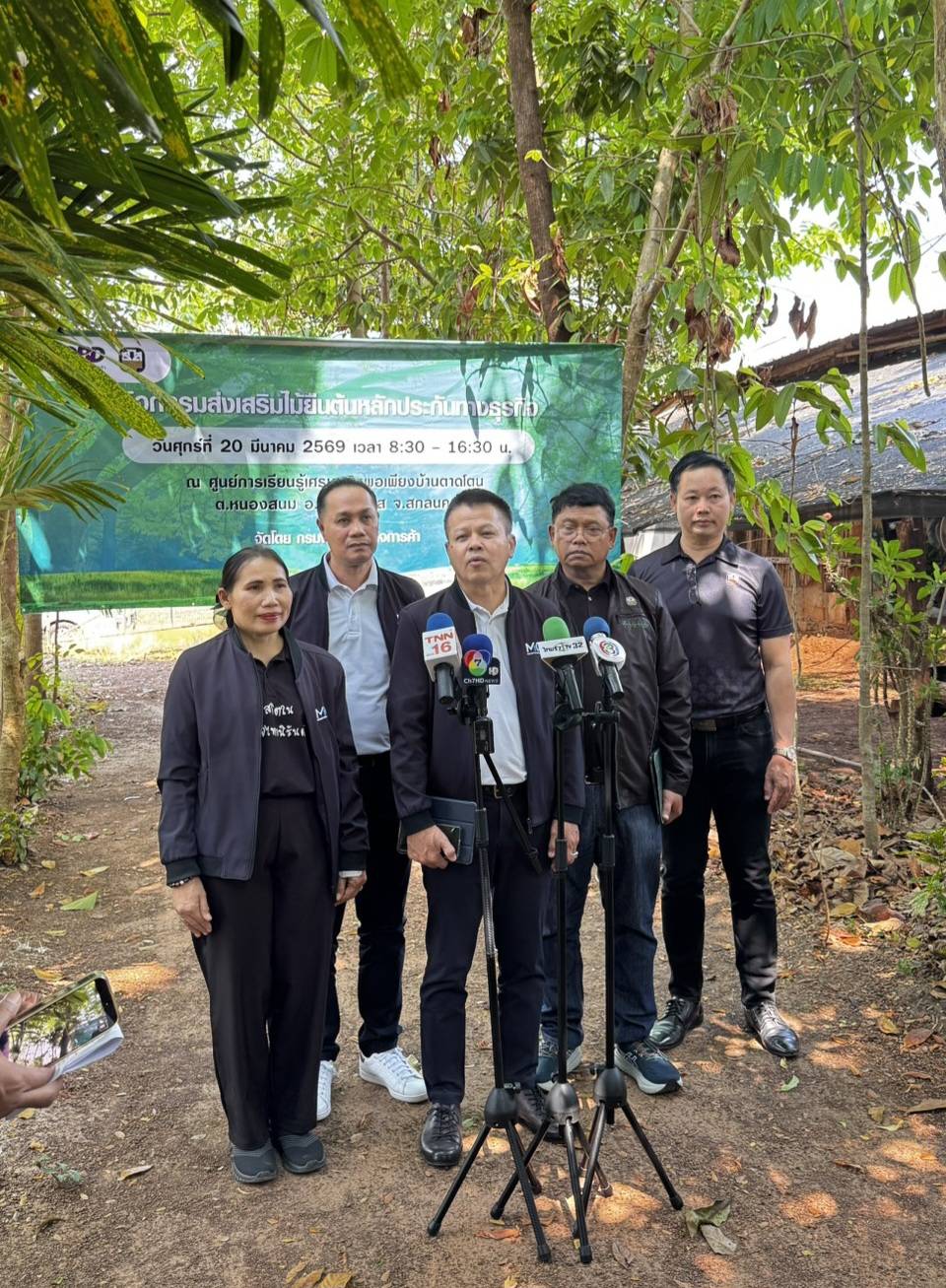 นายจิตรกร ว่องเขตกร รองอธิบดีกรมพัฒนาธุรกิจการค้า กระทรวงพาณิชย์ เผยว่า วันนี้ (20 มีนาคม 2569) ได้รับการมอบหมายจาก นายพูนพงษ์ นัยนาภากรณ์ อธิบดีกรมพัฒนาธุรกิจการค้า ให้เป็นประธานเปิดกิจกรรมส่งเสริมไม้ยืนต้นหลักประกันทางธุรกิจ ณ ศูนย์การเรียนรู้เศรษฐกิจพอเพียงบ้านตาดโตน ตำบลหนองสนม อำเภอวานรนิวาส จังหวัดสกลนคร เนื่องจากเป็นชุมชนต้นแบบที่เป็นแหล่งเรียนรู้ด้านการเกษตรและวิถีพึ่งตนเองตามหลักปรัชญาเศรษฐกิจพอเพียง มีการส่งเสริมการเกษตรทฤษฎีใหม่ พัฒนาชุมชนให้สามารถพึ่งพาตนเองได้ ลดรายจ่าย เพิ่มรายได้ และมีการบริหารจัดการในรูปแบบกลุ่ม เพื่อสร้างความยั่งยืน และที่สำคัญอำเภอวานรนิวาสยังเป็นอำเภอนำร่องของจังหวัดสกลนคร ที่ได้มีการนำไม้ยืนต้นมาจดทะเบียนสัญญาหลักประกันแล้ว จำนวน 3 สัญญา จำนวนต้นไม้ 144 ต้น วงเงินค้ำประกันจำนวน 1.7 ล้านบาท (1,716,579 บาท)