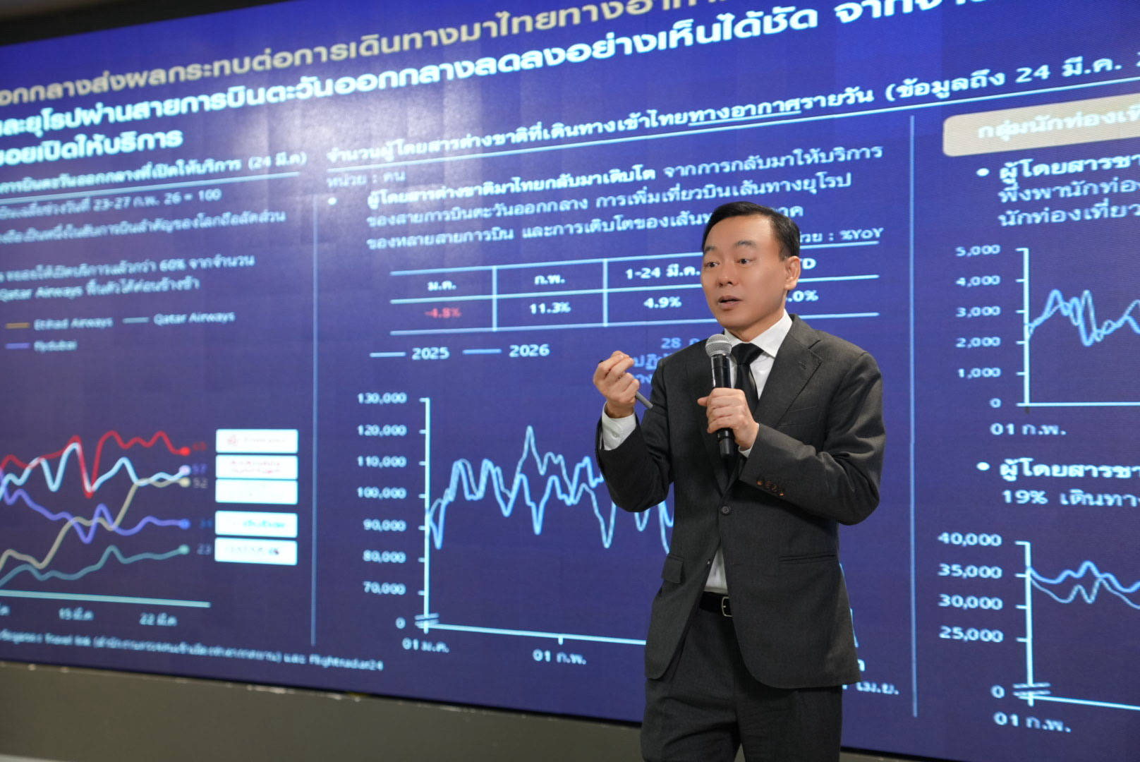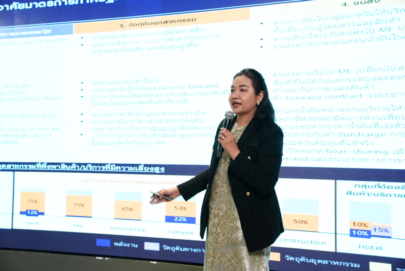 ดร.ยรรยง ไทยเจริญ ประธานเจ้าหน้าที่บริหารสายงานวิจัยเศรษฐกิจและความยั่งยืน ศูนย์วิจัยเศรษฐกิจและธุรกิจ ธนาคารไทยพาณิชย์ (SCB EIC) และนางสาวโชติกา ชุ่มมี ผู้จัดการกลุ่มธุรกิจสินค้าเกษตรและอุตสาหกรรมการผลิต SCB EIC เปิดเผยถึง สภาวะเศรษฐกิจไทย ปี 2569 ท่ามกลางสงครามตะวันออกกลางที่กระทบราคาพลังงานอย่างรุนแรงว่า