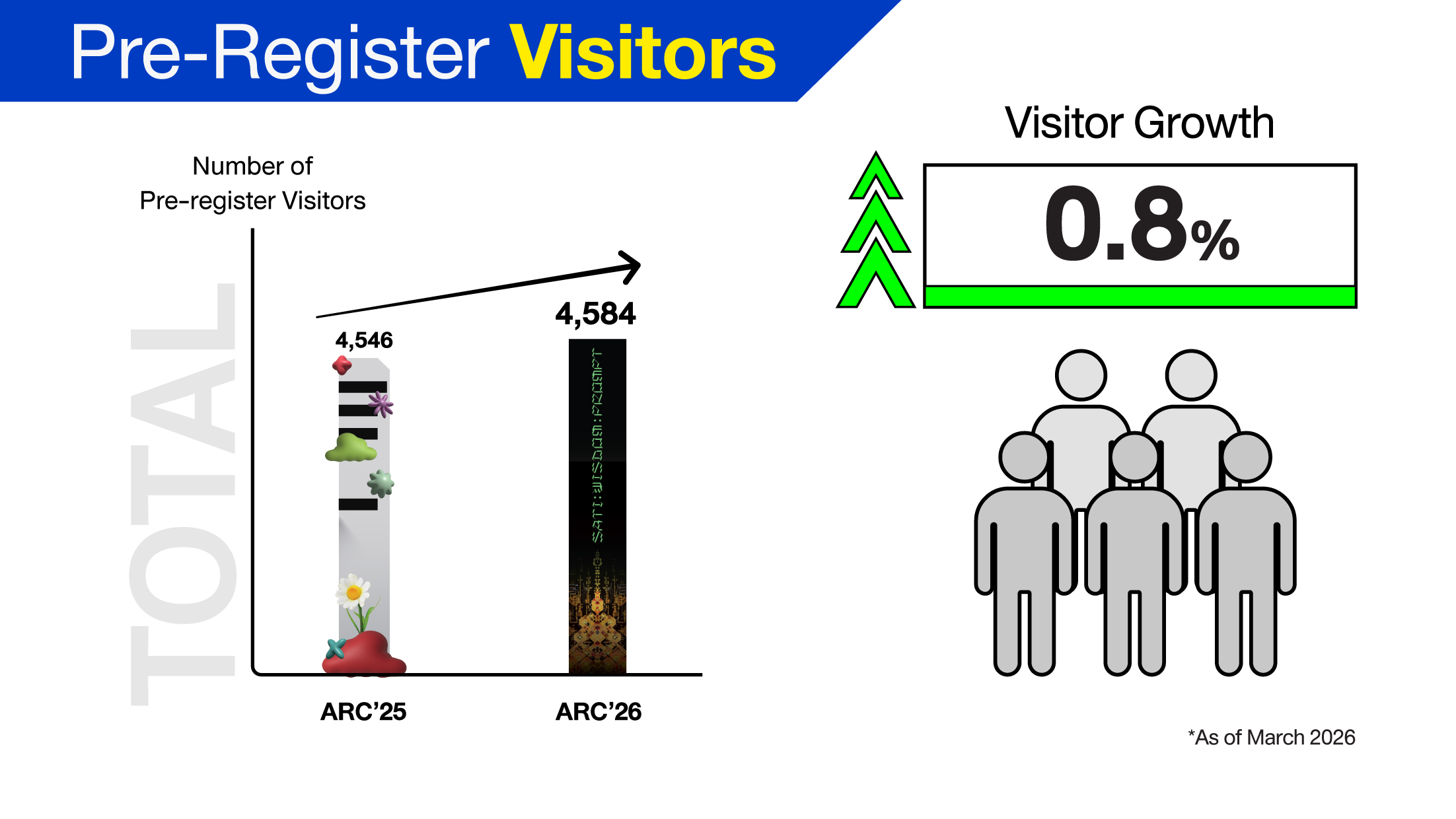 ในจำนวนนี้เป็นผู้แสดงสินค้าใหม่ถึง 201 บริษัท คิดเป็น 23.05% ของพื้นที่จัดแสดงทั้งหมด ขณะเดียวกันยังมีผู้แสดงสินค้าจากต่างประเทศ คิดเป็นสัดส่วนประมาณ 10% ของพื้นที่ โดยมาจากหลากหลายประเทศ อาทิ จีน ญี่ปุ่น เกาหลีใต้ อินเดีย สิงคโปร์ มาเลเซีย เวียดนาม ไต้หวัน อิตาลี โรมาเนีย และโครเอเชีย เป็นต้น ด้านผู้ชมงานคาดว่าจะมีจำนวนกว่า 325,000 คน ตลอดระยะเวลา 6 วัน โดยเป็นกลุ่มผู้เชี่ยวชาญในอุตสาหกรรม (Professional Visitors) ถึงประมาณ 70% ครอบคลุมสถาปนิก นักออกแบบ วิศวกร ผู้รับเหมา ผู้พัฒนาอสังหาริมทรัพย์ และตัวแทนจำหน่ายวัสดุก่อสร้าง ซึ่งล้วนเป็นกลุ่มผู้มีอำนาจตัดสินใจทางธุรกิจ ปัจจุบัน งานสถาปนิก’69 ได้รับความสนใจจากผู้เข้าชมอย่างต่อเนื่อง โดยมีผู้ลงทะเบียนเข้าชมงานล่วงหน้าแล้วจำนวน 4,584 ราย เพิ่มขึ้น 0.8% เมื่อเทียบกับช่วงเวลาเดียวกันของปีก่อน โดยสัดส่วนผู้ลงทะเบียนส่วนใหญ่เป็นกลุ่ม Professional Visitors สูงถึง 69.6% หรือคิดเป็นจำนวน 3,190 ราย และเป็นผู้เข้าชมภายในประเทศคิดเป็น 97.5% และมีผู้เข้าชมจากต่างประเทศอยู่ที่ 2.5% สะท้อนถึงบทบาทของงานสถาปนิกในฐานะเวทีระดับนานาชาติที่เชื่อมโยงเครือข่ายธุรกิจในอุตสาหกรรมก่อสร้างและการออกแบบ