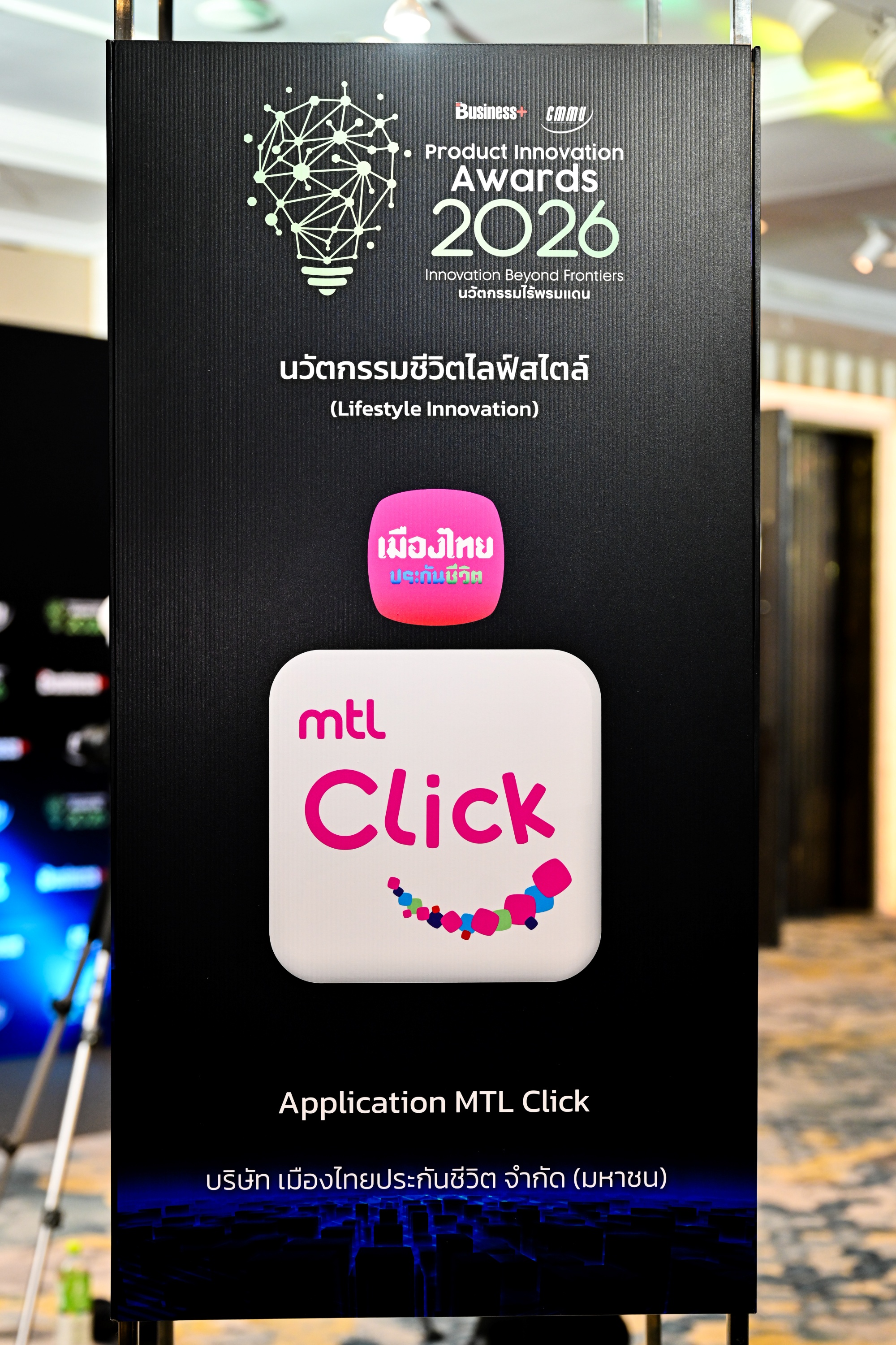 บริษัท เมืองไทยประกันชีวิต จำกัด (มหาชน) คว้ารางวัล "BUSINESS+ PRODUCT INNOVATION AWARDS 2026" ด้านนวัตกรรมชีวิตไลฟ์สไตล์ (Lifestyle Innovation) ต่อเนื่องเป็นปีที่ 7 นับตั้งแต่ปี 2020-2026 ตอกย้ำความสำเร็จของ "MTL Click Application" แพลตฟอร์มดิจิทัลที่พัฒนาเพื่อดูแลลูกค้าอย่างรอบด้านในทุกมิติสะท้อนถึงความมุ่งมั่นในการพัฒนานวัตกรรมด้านผลิตภัณฑ์และบริการอย่างต่อเนื่อง เพื่อยกระดับประสบการณ์ของลูกค้าให้ตอบโจทย์การใช้ชีวิตและไลฟ์สไตล์ของคนในยุคดิจิทัลได้อย่างแท้จริง