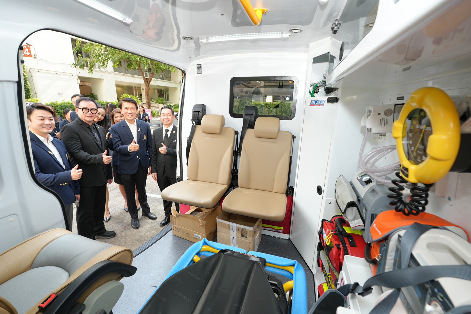 รถพยาบาลคันดังกล่าวเป็นรถพยาบาลที่มีประสิทธิภาพสูง สามารถสนับสนุนการให้บริการด้านการแพทย์ การดูแล และรับส่งผู้ป่วยฉุกเฉินได้อย่างมีประสิทธิภาพ ลดความเสี่ยงจากภาวะแทรกซ้อน นำผู้ป่วยส่งโรงพยาบาลโดยปลอดภัยทันท่วงที ช่วยเพิ่มอัตราการรอดชีวิตของผู้ป่วยได้ ภายในรถพยาบาลประกอบด้วยอุปกรณ์ช่วยชีวิตที่ได้มาตรฐานระดับสากล เช่น เครื่องกระตุกหัวใจไฟฟ้า ชุดให้ออกซิเจนแบบติดผนัง อุปกรณ์กู้ชีพ อุปกรณ์ช่วยหายใจ เครื่องวัดความดันโลหิตแบบเข็ม อุปกรณ์เคลื่อนย้ายผู้ป่วยต่าง ๆ เป็นต้น ซึ่งจะสามารถช่วยเสริมศักยภาพการดำเนินภารกิจด้านการแพทย์และสาธารณสุขเพื่อชุมชนและสังคมของคณะทันตแพทยศาสตร์ จุฬาลงกรณ์มหาวิทยาลัย พร้อมยกระดับคุณภาพชีวิตของประชาชนได้อย่างยั่งยืนต่อไป