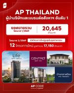 · เอพี ไทยแลนด์ ภายใต้คำมั่นสัญญา ชีวิตดีๆ ที่เลือกเองได้ ครองความเป็นผู้นำธุรกิจพัฒนาอสังหาริมทรัพย์เพื่อการอยู่อาศัย บริษัทและแบรนด์อันดับหนึ่งที่ลูกค้าเชื่อมั่น โชว์ฟอร์มแกร่งไตรมาส 1 ด้วยยอดขายทะลุกว่า 20,645 ล้านบาท สะท้อนดีมานด์จริง และความไว้วางใจจากลูกค้า ควบคู่เสถียรภาพทางการเงินที่มั่นคง