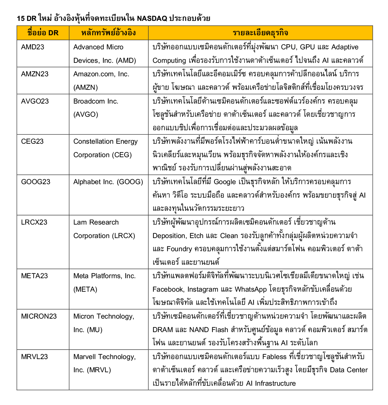 ตลาดหลักทรัพย์แห่งประเทศไทย รับจดทะเบียนตราสารแสดงสิทธิในหลักทรัพย์ต่างประเทศ (DR) 22 หลักทรัพย์ใหม่ อ้างอิงหุ้นชั้นนำในตลาดหลักทรัพย์แนสแด็ก (NASDAQ) และตลาดหลักทรัพย์นิวยอร์ก (NYSE) ออกโดย บริษัทหลักทรัพย์ อินโนเวสท์ เอกซ์ จำกัด (INVX) เริ่มซื้อขายในตลาดหลักทรัพย์ไทย 1 เมษายน 2569