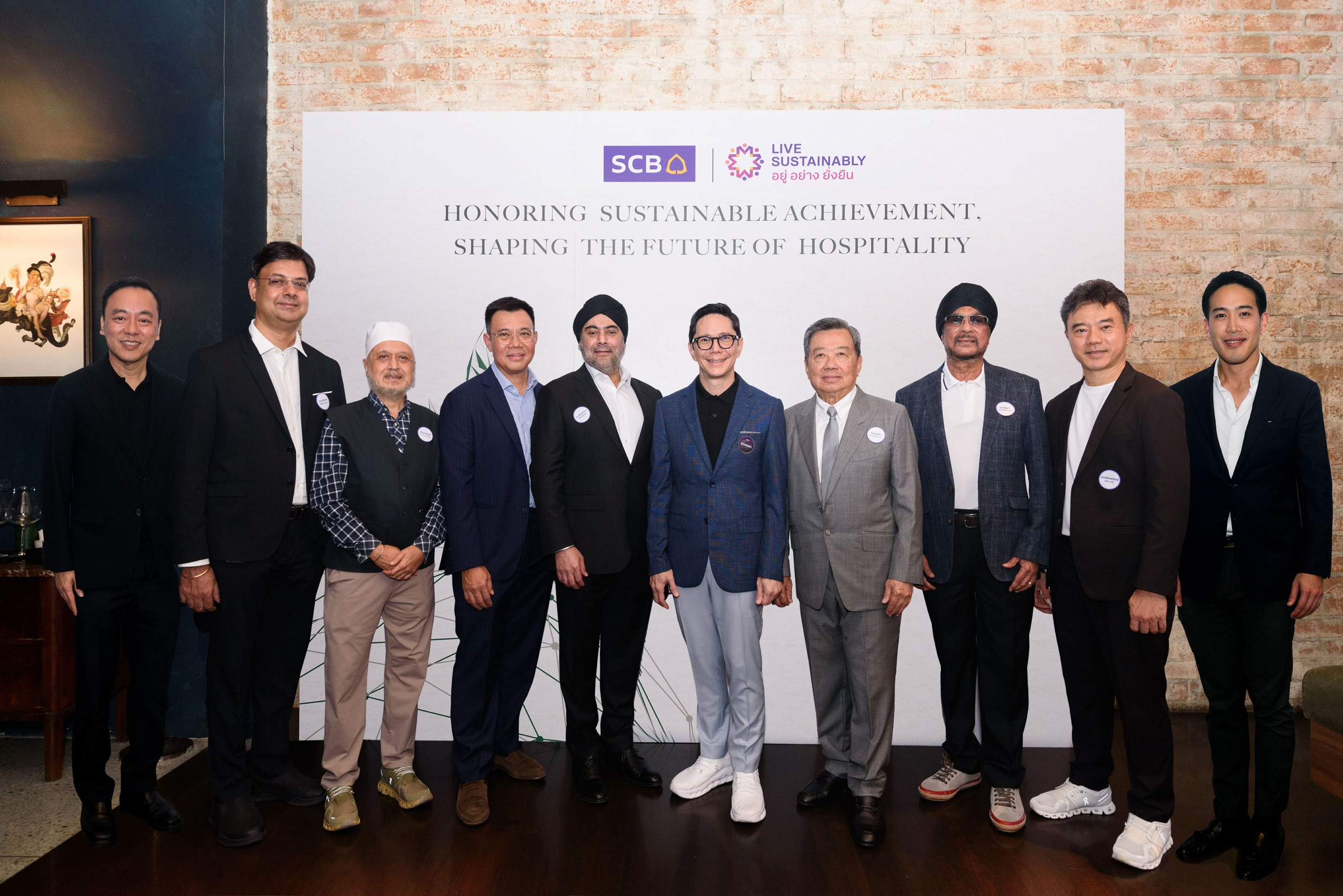 คำบรรยายภาพ - นายกฤษณ์ จันทโนทก (ที่หกจากซ้าย) ประธานเจ้าหน้าที่บริหาร ธนาคารไทยพาณิชย์ และคณะผู้บริหารโรงแรมทั้ง 7 กลุ่ม ร่วมประกาศความสำเร็จในการสนับสนุนการพัฒนาโรงแรมใหม่ จำนวนรวม 9 โครงการ วงเงินสินเชื่อรวม 17,575 ล้านบาท พร้อมมุ่งมั่นยกระดับเป็นโรงแรมยั่งยืน สร้างมูลค่าเพิ่มให้แก่อุตสาหกรรมการท่องเที่ยวและเศรษฐกิจไทยในระยะยาว