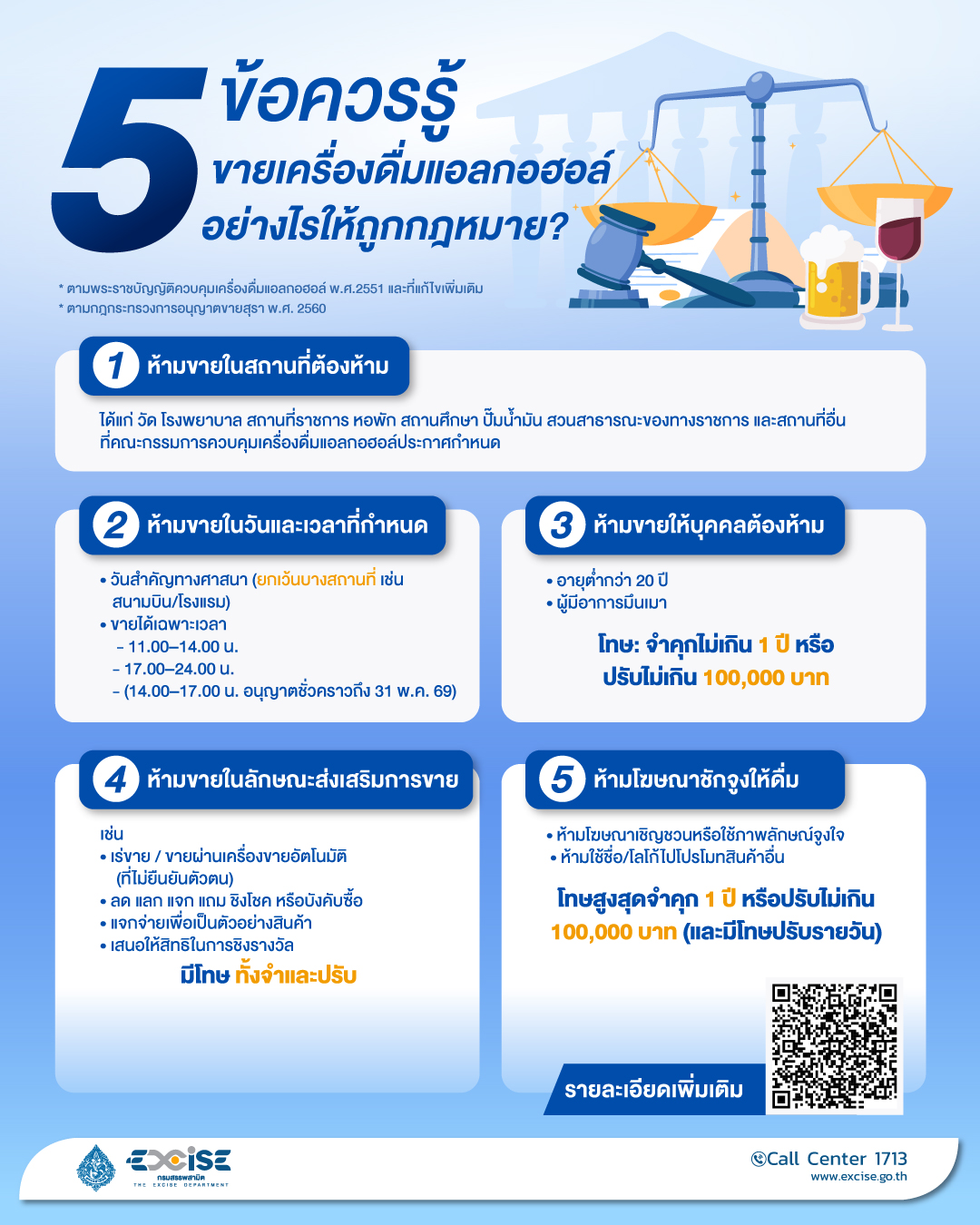 นอกจากนี้ ได้มอบหมายให้เร่งประชาสัมพันธ์สร้างความรับรู้และทำความเข้าใจกับผู้ประกอบการให้ปฏิบัติตามกฎหมายอย่างถูกต้อง รวมถึงหลักเกณฑ์เกี่ยวกับสถานที่จำหน่าย ช่วงเวลาห้ามขาย การห้ามส่งเสริมการขาย โดยเฉพาะการห้ามจำหน่ายให้แก่ผู้มีอายุต่ำกว่า 20 ปี และผู้ที่อยู่ ในอาการมึนเมา ซึ่งมีบทกำหนดโทษทั้งทางอาญา และอาจมีความรับผิดทางแพ่งต่อผู้จำหน่าย หากการจำหน่ายนั้น นำไปสู่ความเสียหายต่อชีวิต ร่างกาย หรือทรัพย์สินของผู้อื่น พร้อมกันนี้กรมสรรพสามิตยังให้ความสำคัญกับการมีส่วนร่วมของภาคีเครือข่ายภาคประชาสังคม โดยพร้อมประสานความร่วมมือในการร่วมเฝ้าระวังและแจ้งเบาะแสการกระทำความผิด โดยเฉพาะในช่วงเทศกาลสงกรานต์