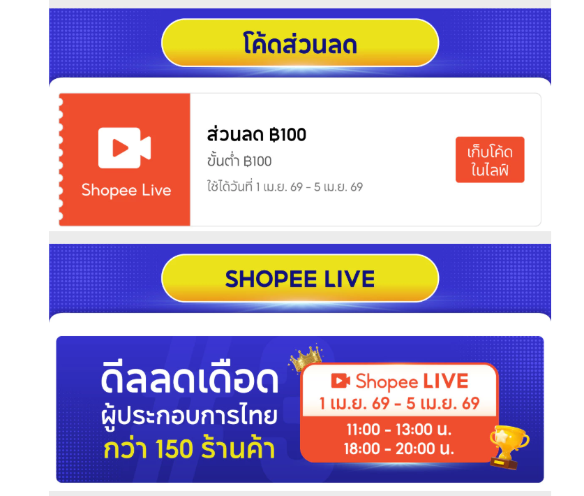 อธิบดีพูนพงษ์ฯ กล่าวต่อว่า “กรมฯ ได้ร่วมมือกับ 3 แพลตฟอร์มอีคอมเมิร์ซชั้นนำอย่าง Shopee TikTok และ NexGen Commerce จัดกิจกรรม LIVE Marathon ระหว่างวันที่ 1 - 10 เมษายน 2569 โดยมีร้านค้าออนไลน์ที่ผ่านการคัดเลือกดังกล่าวทั้ง 150 ร้านค้า โดยรวบรวมสินค้าหลากหลายประเภท อาทิ สินค้าแฟชัน สุขภาพและความงาม อาหารและเครื่องดื่ม และของใช้ในบ้าน โดยร้านค้าจะหมุนเวียนกันมาไลฟ์สดนำเสนอสินค้า พร้อมจัดโปรโมชันพิเศษอย่างต่อเนื่องตลอดแคมเปญ อาทิ คูปองส่วนลด 100 บาท จาก Shopee คูปองส่วนลด 20 บาทจาก TikTok Shop และคูปองส่งฟรีจาก NexGen Commerce ที่สามารถใช้ได้ทันทีตามเงื่อนไขที่กำหนด ซึ่งกิจกรรมนี้จะช่วยเพิ่มยอดขายให้ผู้ประกอบการ รวมถึงช่วยให้ผู้บริโภคสามารถเลือกซื้อสินค้าในราคาที่เข้าถึงได้มากขึ้นในยุคที่ค่าครองชีพสูง”