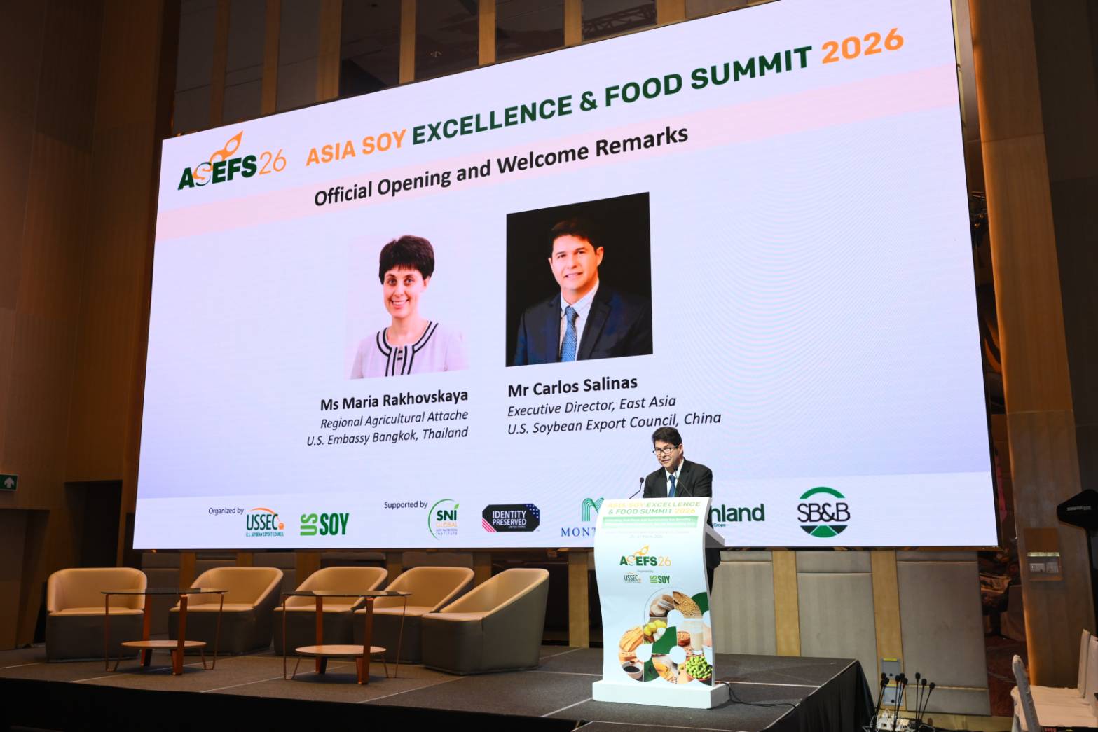 งาน Asia Soy Excellence & Food Summit เปิดฉากด้วยการเน้นย้ำถึงบทบาทของนวัตกรรม โภชนาการ และความยั่งยืน โดยสะท้อนถึงบทบาทที่เพิ่มขึ้นของถั่วเหลืองสหรัฐฯ ในการตอบโจทย์ความต้องการด้าน อาหารที่เปลี่ยนแปลงไปของเอเชีย ภายใต้แนวคิด “Unlocking Nutritious and Sustainable Soy Benefits – Differentiate and Elevate U.S. Soy for Nourishing Asia” งานนี้ได้รวบรวมผู้นำจากทั้งห่วงโซ่อุตสาหกรรมอาหารจากถั่วเหลืองเพื่อร่วมกันสำรวจแนวทางในการใช้ถั่วเหลืองสหรัฐฯ ซึ่งมีคุณภาพสูงและ ผลิตอย่างยั่งยืน เพื่อสนับสนุนการบริโภคที่ดีต่อสุขภาพและระบบอาหารที่มีความยืดหยุ่นและแข็งแกร่งมากขึ้นในภูมิภาค