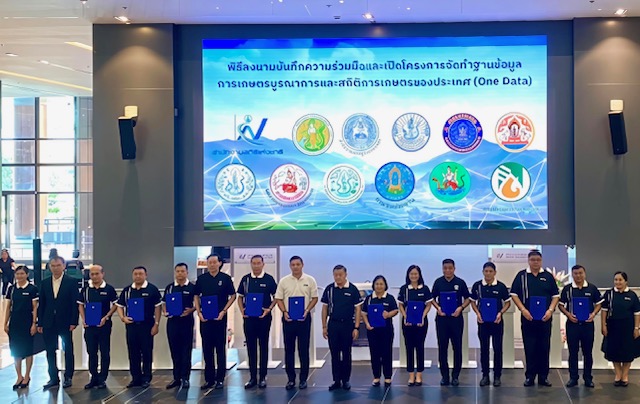 สำหรับ 12 หน่วยงานที่ร่วมลงนามขับเคลื่อนการจัดทำฐานข้อมูลการเกษตรบูรณาการ (One Data) ในครั้งนี้ ประกอบด้วย สำนักงานสถิติแห่งชาติ กระทรวงดิจิทัลเพื่อเศรษฐกิจและสังคม ซึ่งเป็นหน่วยงานหลักในการจัดทำฐานข้อมูลการเกษตร และหน่วยงานในสังกัดกระทรวงเกษตรและสหกรณ์อีก 11 หน่วยงาน ได้แก่ สำนักงานปลัดกระทรวงเกษตรและสหกรณ์ สำนักงานเศรษฐกิจการเกษตร กรมส่งเสริมการเกษตร กรมประมง กรมปศุสัตว์ กรมหม่อนไหม กรมพัฒนาที่ดิน สำนักงานการปฏิรูปที่ดินเพื่อเกษตรกรรม กรมชลประทาน กรมส่งเสริมสหกรณ์ และการยางแห่งประเทศไทย