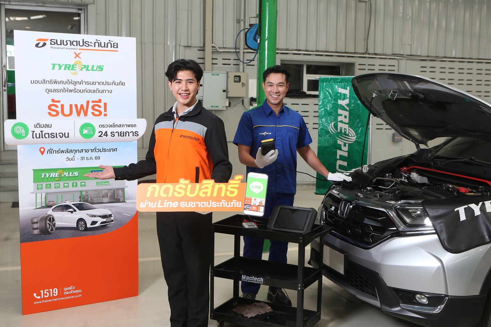 บริษัท ธนชาตประกันภัย จำกัด (มหาชน) ร่วมกับ TYREPLUS (ไทร์พลัส) ศูนย์บริการรถยนต์ครบวงจรมาตรฐานระดับสากล มอบสิทธิพิเศษสำหรับลูกค้าธนชาตประกันภัย ด้วยบริการตรวจสภาพรถยนต์ 24 รายการ พร้อมเติมลมไนโตรเจนฟรี เพื่อเสริมความพร้อมและความมั่นใจก่อนออกเดินทาง