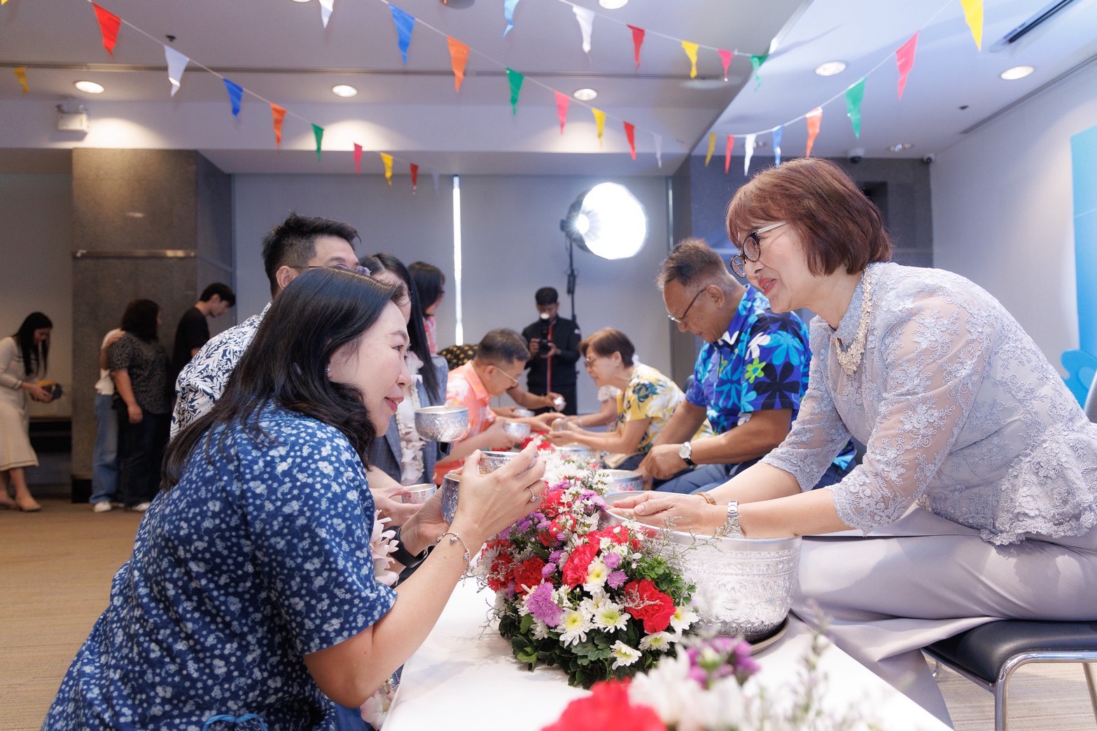 นางสาวศุกร์ศิริ อภิญญานุวัฒน์ รองปลัดกระทรวงการคลัง และประธานกรรมการธนาคารเพื่อการส่งออกและนำเข้าแห่งประเทศไทย (EXIM BANK) นำผู้บริหารและพนักงาน EXIM BANK ร่วมงาน “EXIM สงกรานต์ สาดสุข” โดยจัดพิธีสรงน้ำพระพุทธรูป พิธีรดน้ำดำหัวขอพรจากผู้บริหาร อดีตผู้บริหาร และพนักงานเกษียณอายุ เพื่อความเป็นสิริมงคล สืบสานประเพณีไทยอันดีงามเนื่องในเทศกาลสงกรานต์หรือวันปีใหม่ไทยที่มีความงดงาม เอื้ออาทร เต็มไปด้วยบรรยากาศของความกตัญญู ความอบอุ่น การให้เกียรติเคารพซึ่งกันและกัน ความสนุกสนานในการพบปะสังสรรค์และเล่นน้ำสงกรานต์ ณ EXIM BANK สำนักงานใหญ่ เมื่อวันที่ 9 เมษายน 2569