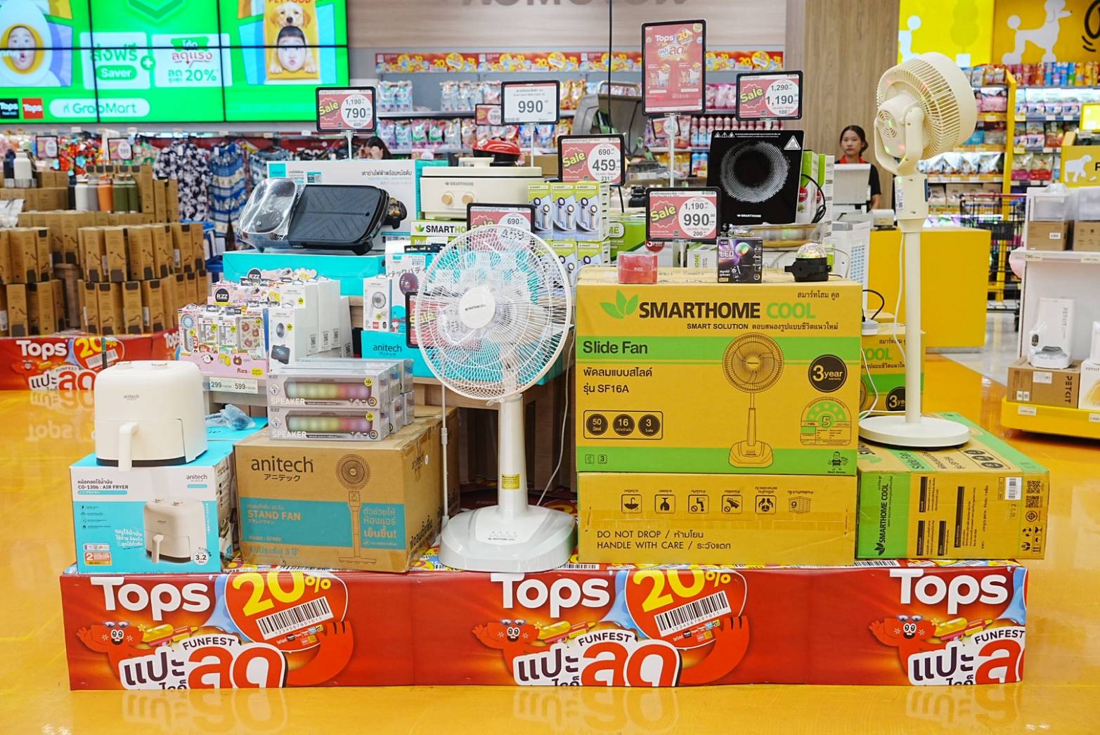 อธิบดีพูนพงษ์ฯ กล่าวต่อว่า “กระทรวงพาณิชย์ ได้เปิดตัวสินค้า ‘ไทยช่วยไทย’ ลดภาระ ลดค่าครองชีพ เมื่อวันที่ 1 เมษายน 2569 ที่ผ่านมา โดยได้รับความร่วมมือจากห้างค้าส่ง-ค้าปลีกรายใหญ่ อาทิ แม็คโคร โลตัส บิ๊กซี เดอะมอลล์ Tops วัตสัน ฟู้ดแลนด์ 7-11 ซีเจ มอร์ และผู้ผลิตสินค้าอุปโภคบริโภคทั่วประเทศ อาทิ สหพัฒน์ ยูนิลิเวอร์ BJC Kao ไวไว ข้าวมาบุญครอง ข้าวแสนดี ข้าวหงษ์ทอง และข้าวไก่แจ้ นำสินค้าอุปโภคบริโภคที่จำเป็นมาจำหน่ายในราคาพิเศษกว่า 3,000 รายการ ครอบคลุม 16 ประเภทสินค้า ลดราคาตั้งแต่ 25-58% อาทิ สินค้าเฮ้าส์แบรนด์ จาก Tops เช่น * ท็อปส์ข้าวหอม 100 เปอร์เซ็นต์ 5กก. ราคาโปรโมชัน 112 บาท ถูกกว่าแบรนด์หลัก 10 - 20 บาท *มัสท์ชูกระดาษชำระแบบม้วนเอ็กซ์ตร้า 24 ม้วน ราคาโปรโมชัน 95 บาท ถูกกว่าแบรนด์หลัก 20 - 50 บาท *ถูกใจผงซักฟอกสูตรมาตรฐานสำหรับซักเครื่อง 1,000 กรัม ราคาโปรโมชัน 35 บาท ถูกกว่าแบรนด์หลัก 20 35 บาท *สมาร์ทเตอร์น้ำยาล้างจานกลิ่นมะนาว 740 มล. แพค 3 ราคาโปรโมชัน 99 บาท ถูกกว่าแบรนด์หลัก 20 - 40 บาท เป็นต้น และ Tops ยังมีสินค้าเฮ้าส์แบรนด์ กว่า 600 รายการ ที่นำมาร่วมลดราคา รวมถึง เฮ้าส์แบรนด์จากแม็คโคร โลตัส บิ๊กซี เดอะมอลล์ วัตสัน ที่นำมาร่วมลดราคาอีกหลายพันรายการ ซึ่งสินค้า ‘ไทยช่วยไทย’ ลดภาระ ลดค่าครองชีพ จะดำเนินการในระยะแรกตั้งแต่วันที่ 1 เมษายน 2569 ซึ่งครอบคลุมช่วงเทศกาลสงกรานต์พอดี ประชาชนสามารถจับจ่ายสินค้าได้ในราคาประหยัดอย่างทั่วถึง ช่วยบรรเทาภาระค่าใช้จ่ายในช่วงที่มีความต้องการใช้จ่ายสูง”