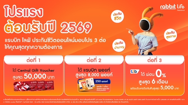บริษัท แรบบิท ประกันชีวิต จำกัด (มหาชน) หรือ Rabbit Life บริษัทในเครือบริษัท บีทีเอส กรุ๊ป โฮลดิ้งส์ จำกัด (มหาชน) เปิดดีลออนไลน์รับซัมเมอร์ พร้อมยกขบวนผลิตภัณฑ์ประกันชีวิตจัดเต็ม 3 กลุ่มหลัก ได้แก่ ประกันชีวิต อาทิ Champion 10/2, Hero 10/3 และ Hero 10/5 ประกันสุขภาพ อย่าง Health Smile และประกันบำนาญ Peak Pension 100/1 และ Peak Pension 100/5 ครอบคลุมทุกความต้องการด้านความคุ้มครองที่หลากหลาย มาพร้อมดีลสุดฮอตถึง 3 ต่อ สำหรับการซื้อผ่านช่องทางออนไลน์ ได้แก่ ฮอตที่ 1: รับ Central Gift Voucher สูงสุด 50,000 เมื่อซื้อผลิตภัณฑ์ประกันที่ร่วมรายการ ฮอตที่ 2: รับแรบบิท พอยท์สูงสุด 8,000 พอยท์ ฮอตที่ 3: ผ่อน 0% นานสูงสุด 6 เดือน กับบัตรเครดิต TTB พร้อมรับเงินคือสูงสุด 5,000 บาท สำหรับผลิตภัณฑ์ที่ร่วมรายการ โดยสามารถรับสิทธิพิเศษได้ตั้งแต่วันนี้ – 30 เมษายน 2569
