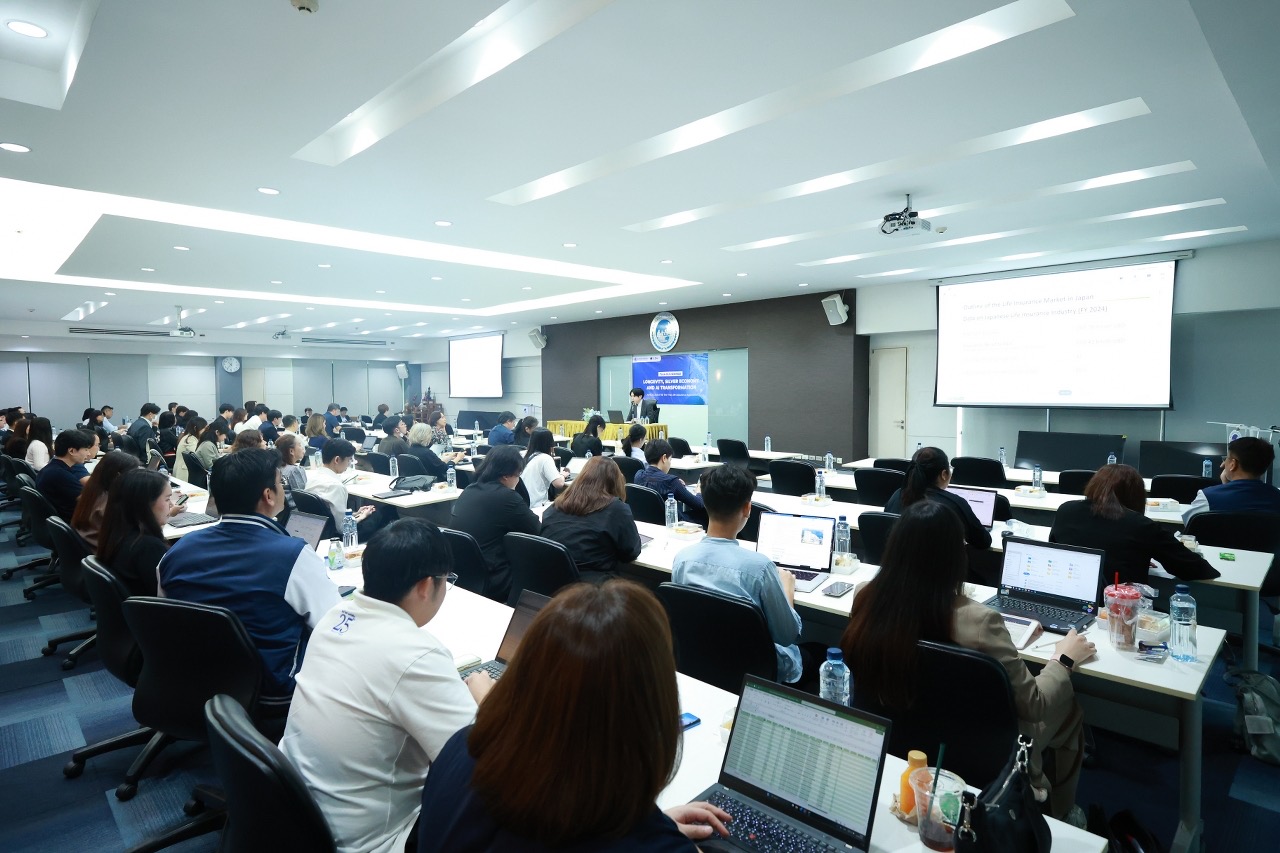 ช่วงเช้า บรรยายโดย Mr. Yuji Nitta จากสมาคมประกันชีวิตแห่งญี่ปุ่น (LIAJ) ในหัวข้อ “Longevity and Silver Economy: Insights from the Japanese Life Insurance Industry” เป็นการนำเสนอภาพรวมตลาดประกันชีวิตญี่ปุ่นที่มีอัตราการถือครองกรมธรรม์สูงถึงร้อยละ 89 ของครัวเรือน พร้อมเผยกลยุทธ์การรับมือความท้าทายในสังคมสูงวัย (Super-aged Society) ซึ่งประชากรมีอายุขัยเฉลี่ยยืนยาวขึ้นและมีแนวโน้มผู้ป่วยภาวะสมองเสื่อมเพิ่มสูงถึงร้อยละ 18 ในอนาคต โดย LIAJ ได้แนะแนวทางการพัฒนาผลิตภัณฑ์ที่ตอบโจทย์ความกังวลด้านค่าใช้จ่ายหลังเกษียณและการดูแลระยะยาว อาทิ ประกันบำนาญตลอดชีพ (Lifetime Annuity) ประกันโรคสมองเสื่อม (Dementia Insurance) และการใช้แอปพลิเคชันดิจิทัลเพื่อส่งเสริมสุขภาพและตรวจเช็กสมรรถภาพทางสมอง ภายใต้หลักการ 3Ps (Preparedness, Prevention, Protection) เพื่อสร้างความพร้อม การป้องกัน และความคุ้มครองที่สมบูรณ์ในยุคชีวิต 100 ปี