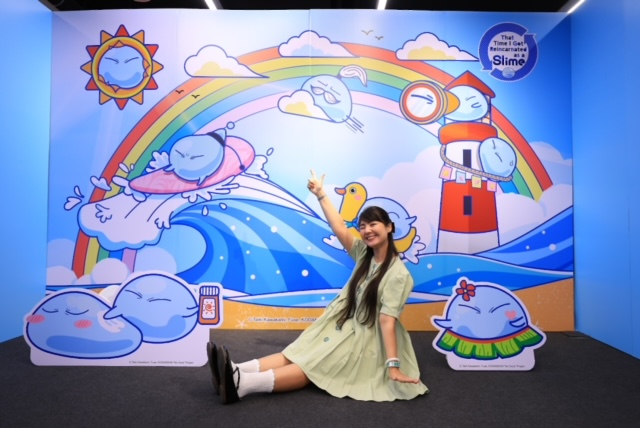 จากนั้นฟินกับโซนถ่ายภาพสดใสรับซัมเมอร์ Slime Beach Festival ธีมทะเลในบรรยากาศชายหาดให้เก็บภาพความสดชื่นแบบสไลม์ Slime Character Photo Frame พื้นที่ถ่ายภาพสุดพิเศษที่ สามารถถ่ายรูปกับตัวละครจากเรื่องเกิดใหม่ทั้งทีก็เป็นสไลม์ไปซะแล้ว ผ่านกรอบภาพดีไซน์พิเศษ เสมือนได้ร่วมเฟรมกับเหล่าตัวละครในโลกเทมเพสต์ Slime Mirror Selfie กระจกเซลฟี่สไตล์สไลม์แลนด์มาร์กสุดไอคอนิคของงานที่สายโซเชียลห้ามพลาด เพราะออกแบบมาเพื่อให้แฟน ๆ ได้เก็บภาพสุดชิคและแชร์โมเมนต์แห่งความสนุก รวมถึงกิจกรรม Interactive Slime Message Board ที่เปิดพื้นที่ให้แฟน ๆ ได้ร่วมส่งต่อความประทับใจถึงตัวละครในดวงใจ พร้อมสนุกกับพร็อพถ่ายภาพกรอบรูปสไลม์ขนาดเท่าคนจริง