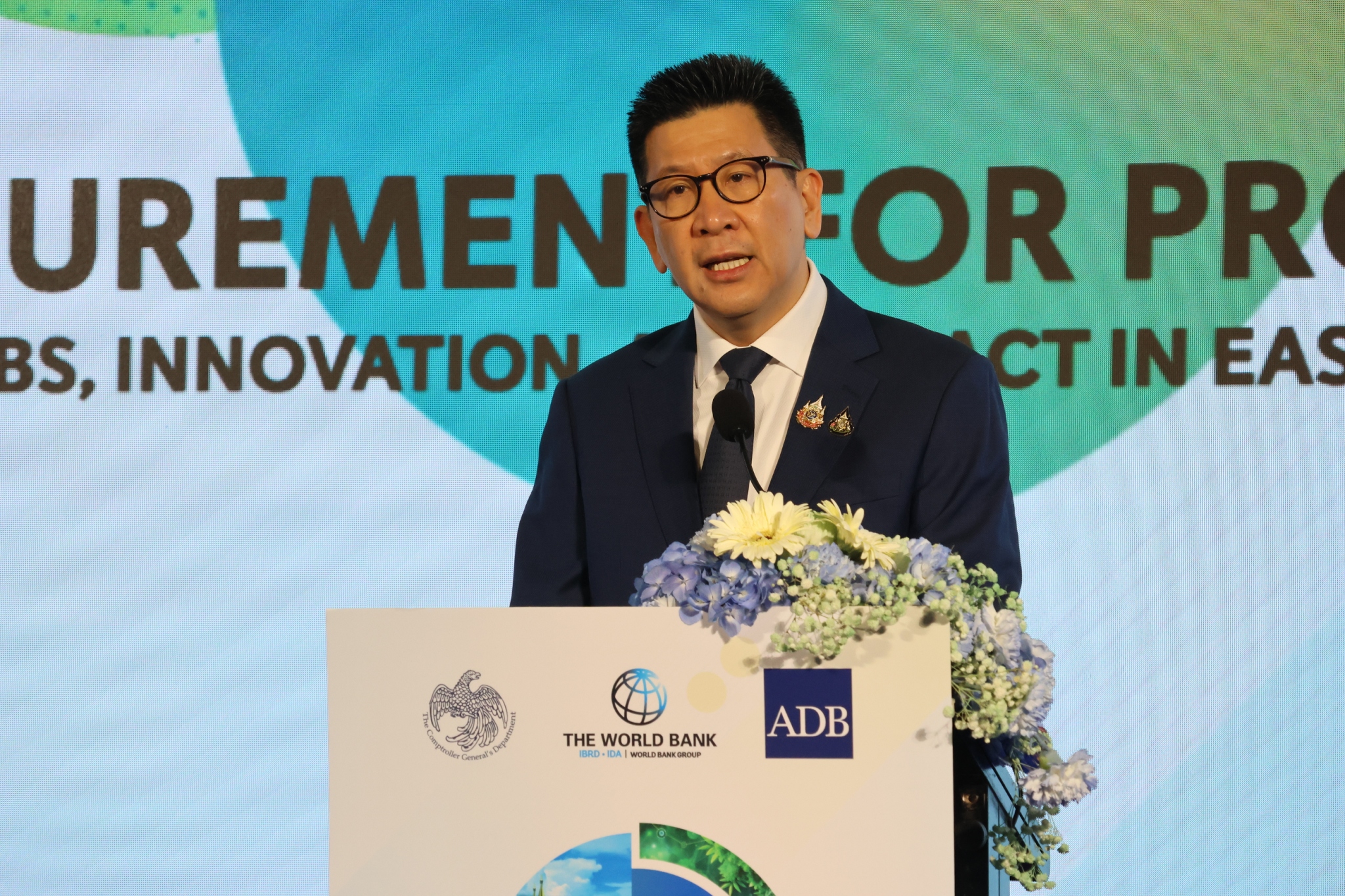 ในการนี้รองนายกรัฐมนตรีและรัฐมนตรีว่าการกระทรวงการคลังได้กล่าวปาฐกถาพิเศษ เพื่อตอกย้ำบทบาทการจัดซื้อจัดจ้างภาครัฐ ในฐานะเครื่องมือเชิงยุทธศาสตร์ที่ใช้ขับเคลื่อนเศรษฐกิจ พร้อมระบุว่า “ท่ามกลางความไม่แน่นอนของเศรษฐกิจโลก ภาครัฐจำเป็นต้องใช้การจัดซื้อจัดจ้างเป็นกลไกสำคัญในการกำหนดทิศทางตลาด สร้างเสถียรภาพ และผลักดันการเติบโตระยะยาว โดยในปัจจุบันการจัดซื้อจัดจ้างภาครัฐมีมูลค่าคิดเป็นราว 12% ของ GDP โลก และอาจสูงถึง 20% ในประเทศพัฒนาแล้วบางประเทศ สะท้อนถึงอิทธิพลของการใช้จ่ายภาครัฐต่อโครงสร้างเศรษฐกิจโดยตรง” พร้อมชี้ว่าการเพิ่มประสิทธิภาพการจัดซื้อจัดจ้างภาครัฐสามารถช่วยประหยัดงบประมาณได้ถึง 10% ของมูลค่าโครงการ ซึ่งสามารถนำไปต่อยอดสู่การพัฒนาเศรษฐกิจอย่างทั่วถึงและยั่งยืนต่อไป นอกจากนี้ รัฐบาลไทยได้กำหนดทิศทางนโยบายผ่านแนวคิด “4T” ได้แก่ Target, Transition, Transformation และ Together โดยมุ่งเน้นการใช้ทรัพยากรอย่างตรงจุด สนับสนุนการเปลี่ยนผ่านสู่เศรษฐกิจที่ยั่งยืน ยกระดับศักยภาพแรงงานและอุตสาหกรรม ตลอดจนสร้างความร่วมมือระหว่างภาครัฐ เอกชน และสังคม เพื่อให้การใช้จ่ายภาครัฐเกิดประสิทธิผลสูงสุด โดยไทยกำลังเดินหน้าพัฒนาระบบจัดซื้อจัดจ้างผ่าน 3 เสาหลัก ได้แก่ การจัดซื้อจัดจ้างดิจิทัลที่เพิ่มความโปร่งใสและการใช้ข้อมูล การจัดซื้อจัดจ้างสีเขียวที่คำนึงถึงผลกระทบด้านสิ่งแวดล้อมในระยะยาว และการจัดซื้อจัดจ้างเชิงนวัตกรรมที่เน้นผลลัพธ์มากกว่าราคา เพื่อเปิดโอกาสให้เทคโนโลยีและธุรกิจใหม่เติบโต ขณะเดียวกันรัฐบาลยังให้ความสำคัญกับการมีส่วนร่วมของวิสาหกิจขนาดกลางและขนาดย่อม (SMEs) ซึ่งเป็นฐานหลักของเศรษฐกิจ โดยในปี 2568 การมีส่วนร่วมของ SMEs ในระบบจัดซื้อจัดจ้างภาครัฐของไทยเพิ่มขึ้น 8.9%