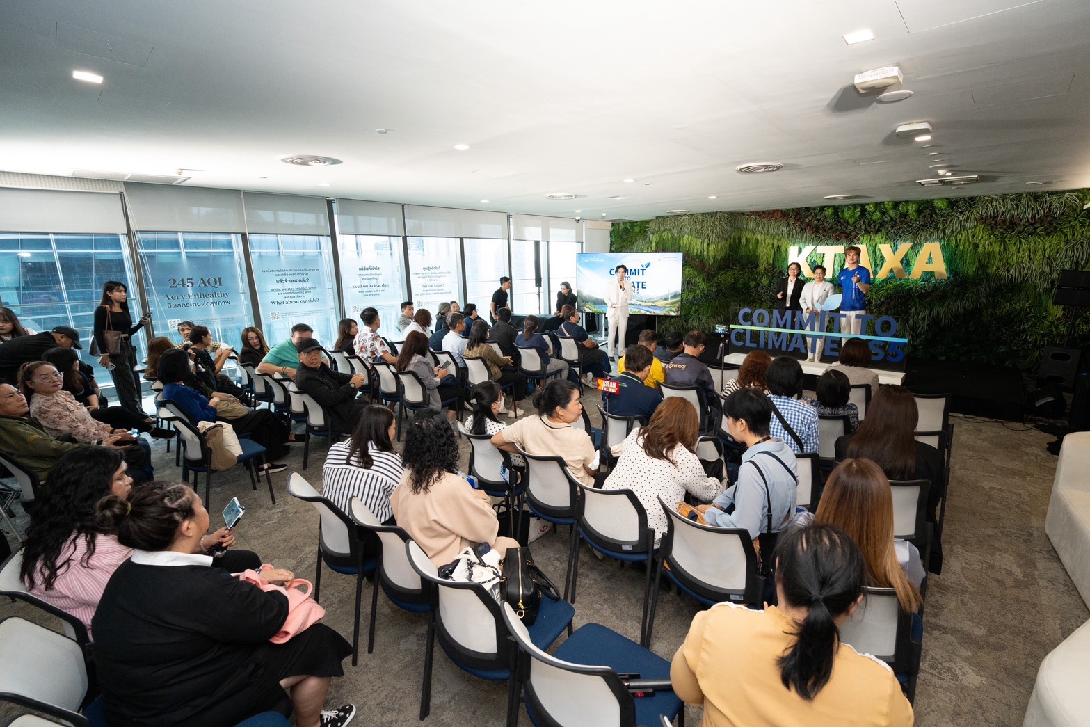 คุณบุปผาวดี โอวรารินท์ ประธานเจ้าหน้าที่บริหาร ฝ่ายการตลาด กล่าวว่า “กรุงไทย-แอกซ่า ประกันชีวิต มุ่งมั่นและให้ความสำคัญด้านสิ่งแวดล้อมอย่างต่อเนื่อง โดยเฉพาะเรื่อง Climate Change & Biodiversity ซึ่งเป็นหัวใจสำคัญในกลยุทธ์หลักของบริษัทฯ และกลุ่มแอกซ่าทั่วโลก ตลอดระยะเวลา 29 ปีที่ผ่านมา เราริเริ่มและดำเนินโครงการเพื่อสิ่งแวดล้อมมากมาย ทั้งด้านการสร้างความตระหนักรู้ และการลงมือทำร่วมกับหน่วยงานภาครัฐ และเอกชน เพื่อร่วมมือกันแก้ไขวิกฤตสิ่งแวดล้อม ทั้งนี้แคมเปญ “Commit To Climate” เป็นอีกหนึ่งในแคมเปญใหญ่ที่ได้รับการตอบรับเป็นอย่างดีเสมอมา เริ่มต้นขึ้นในปี 2565 ซึ่งตลอดทั้งสี่ปีที่ผ่านมา บริษัทฯ ได้มุ่งมั่นขับเคลื่อนในการสร้างความตระหนักรู้ เกี่ยวกับการรักษาสิ่งแวดล้อม ทั้งด้านการอนุรักษ์ท้องทะเล แม่น้ำ การสร้างพื้นที่สีเขียว สัตว์ป่า และอากาศ พร้อมทั้งร่วมส่งเสริมการปรับเปลี่ยนพฤติกรรม ลด ละ เลิก กิจกรรมต่างๆ ที่เป็นสาเหตุของภาวะโลกร้อน และร่วมสร้างโลกที่ดีขึ้นได้ด้วยกัน นอกจากนั้นตลอด 4 ปีที่ดำเนินโครงการ ยังมีการเข้าถึง หรือ Reach ที่สูงมากถึง 8 ล้าน reach และผู้เข้าร่วมกิจกรรมรวมทั้งสิ้นกว่า 110,000 ท่าน