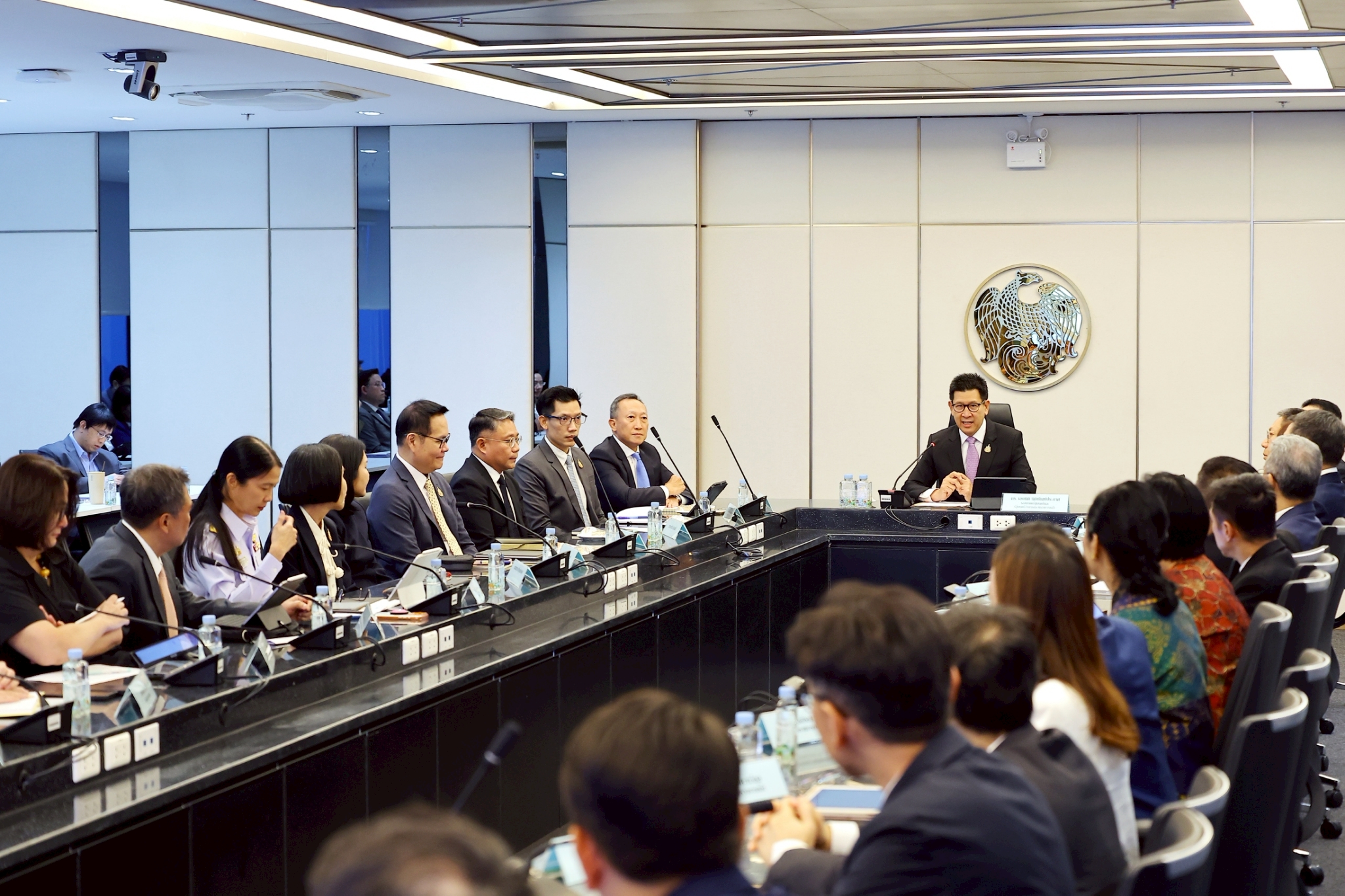ดร.เอกนิติ นิติทัณฑ์ประภาศ รองนายกรัฐมนตรีและรัฐมนตรีว่าการกระทรวงการคลัง เป็นประธานการประชุมมอบนโยบายแก่ผู้บริหารระดับสูงกระทรวงการคลัง โดยมีนายวรภัค ธันยาวงษ์ รัฐมนตรีช่วยว่าการกระทรวงการคลัง นายลวรณ แสงสนิท ปลัดกระทรวงการคลัง และผู้บริหารกระทรวงการคลัง ร่วมการประชุม ณ ห้องประชุมรัฐมนตรีว่าการกระทรวงการคลัง ชั้น 20 อาคาร 150 ปี กระทรวงการคลัง เมื่อวันที่ 1 ตุลาคม 2568